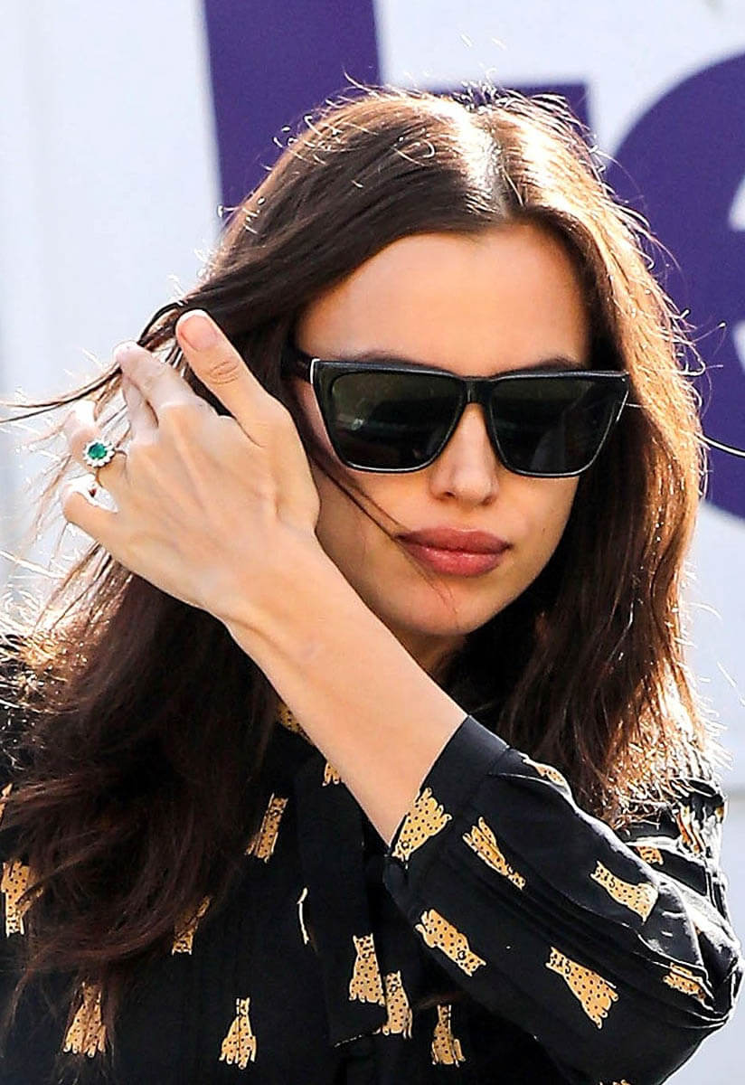 Bradley Cooper and Irina Shayk are expecting a child together. Now there’s speculation that they’re engaged. Here are new shots of Irina wearing a new ring, a huge emerald. People are already comparing it to the ring Prince William gave Kate Middleton.