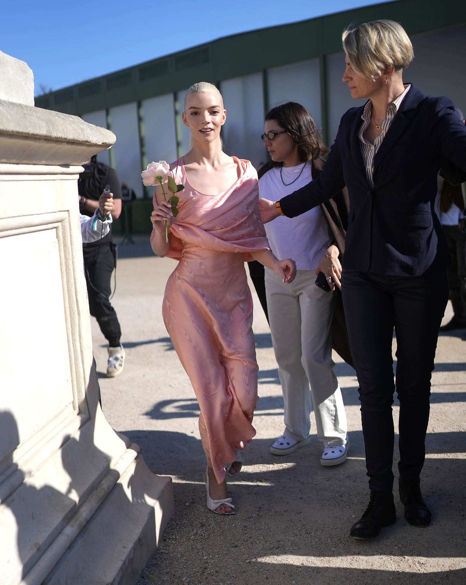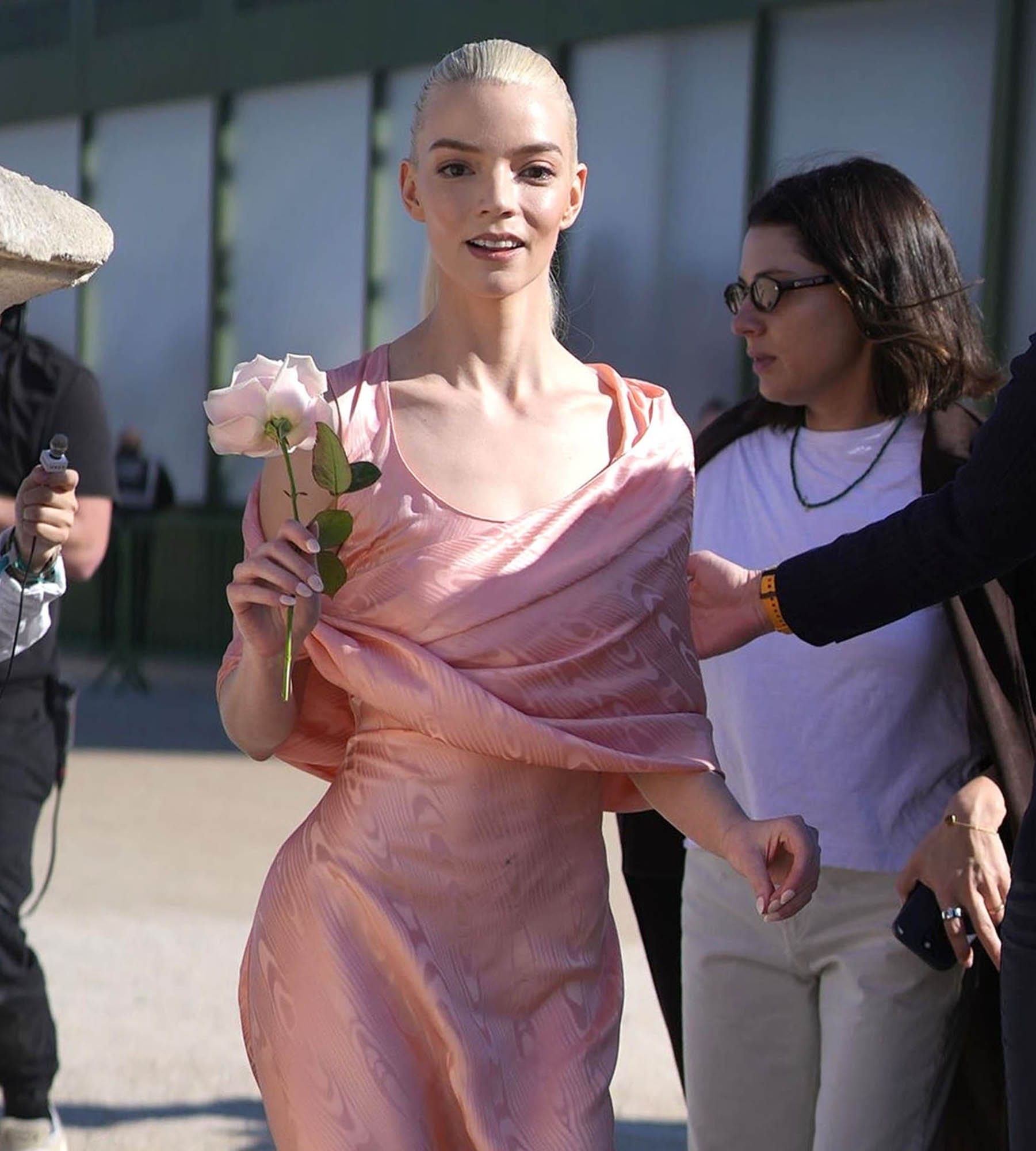 The Dior show was in Paris today and Anya Taylor-Joy showed up in blush pink and a sleek pony. Do we think she’s getting her style groove back, or is she still stuck in a post-Law Roach rut?