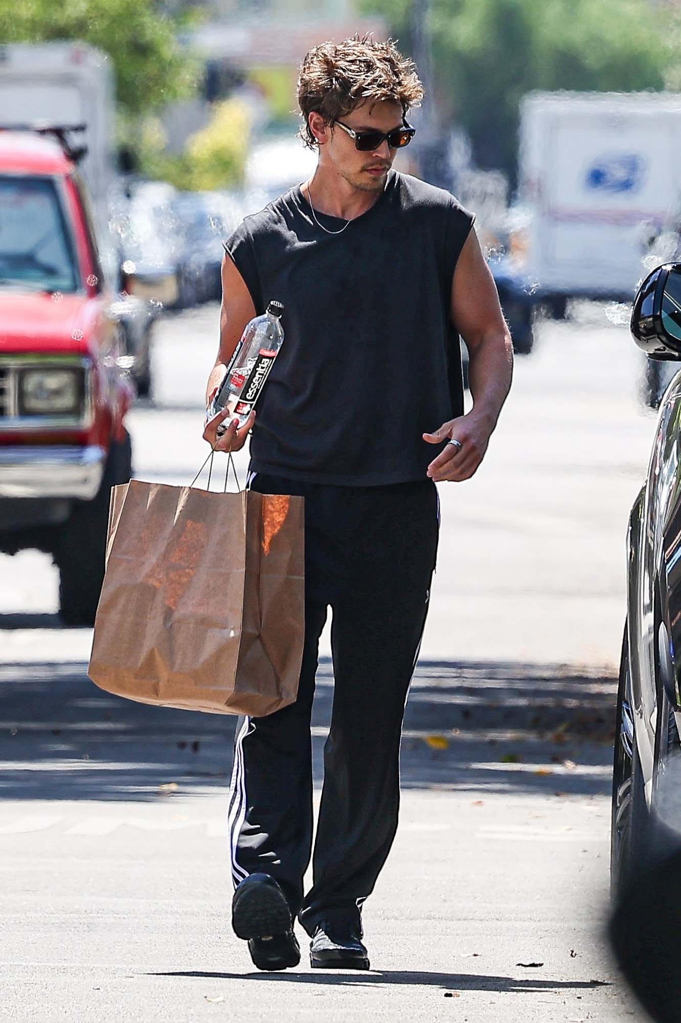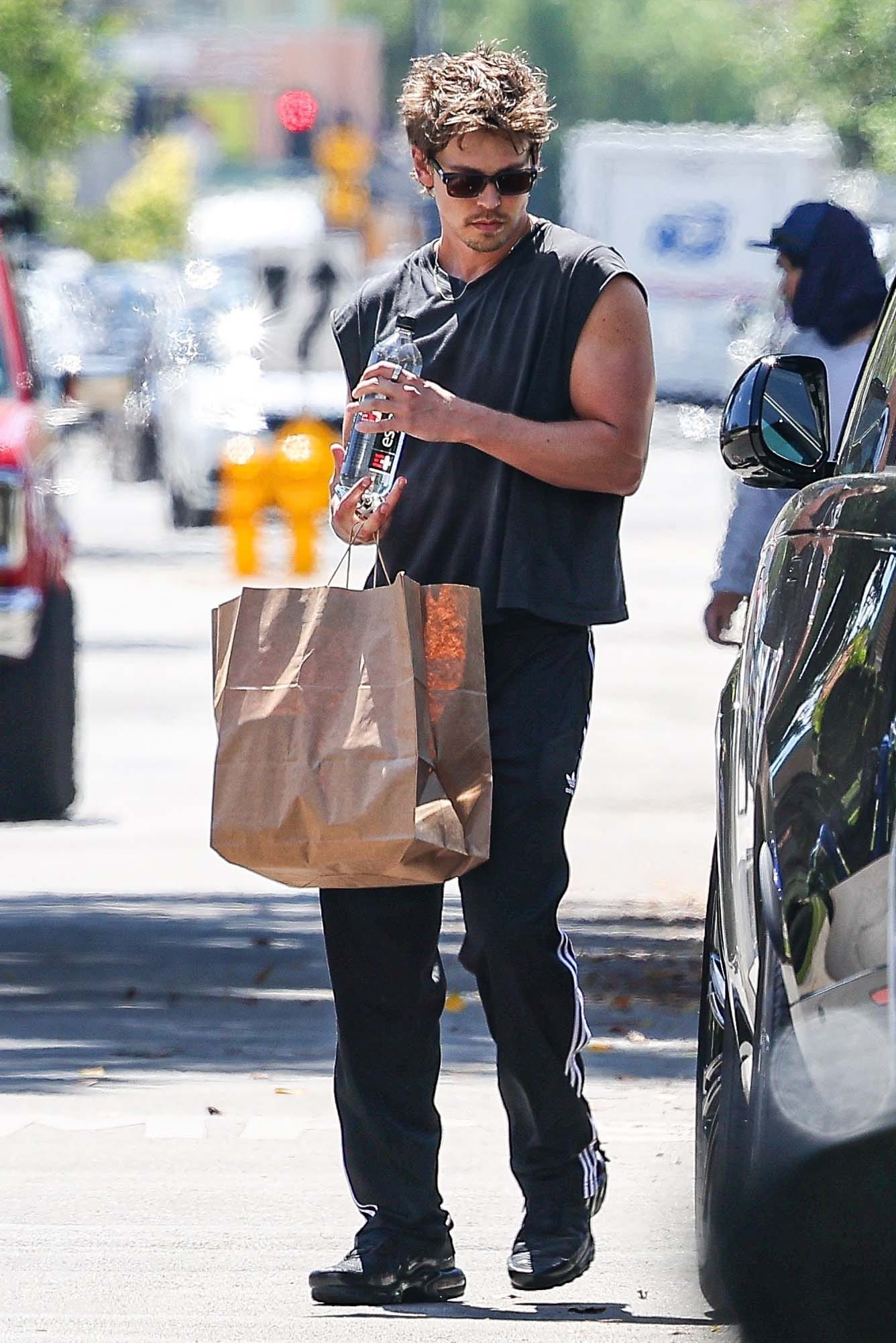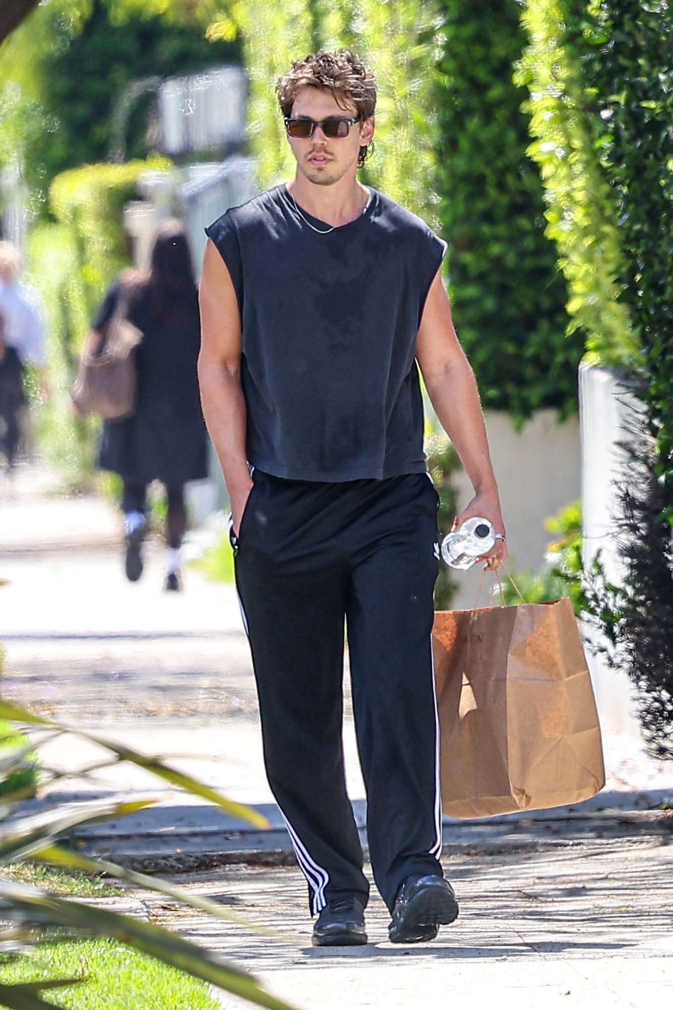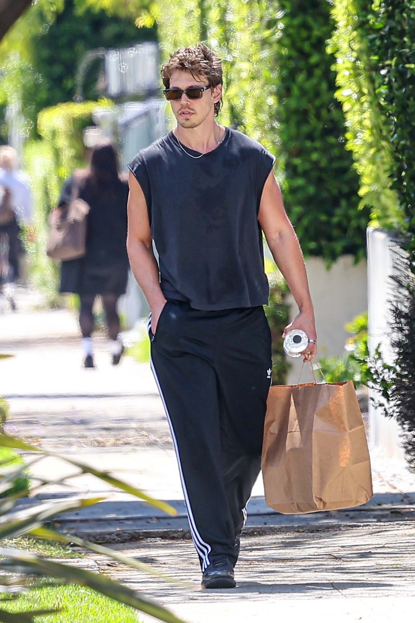 I’m really just here to appreciate how hot Austin Butler is, seen here this week picking up some groceries, presumably after a workout; he was papped a few days prior in the same outfit – a tee with cut-off sleeves and track pants. As they say, that’s it, that’s the tweet…