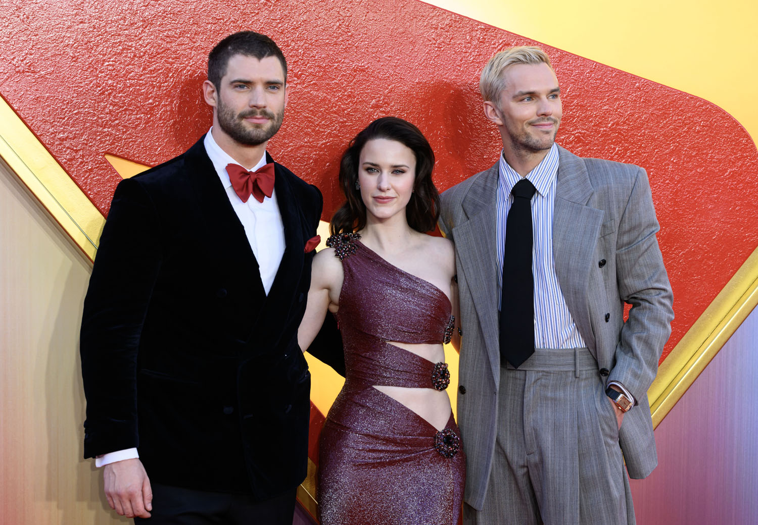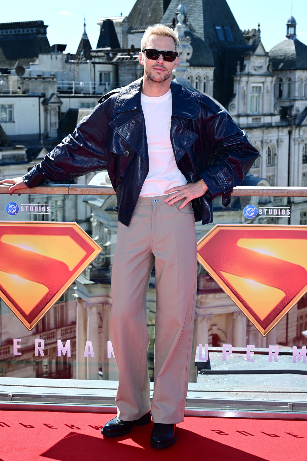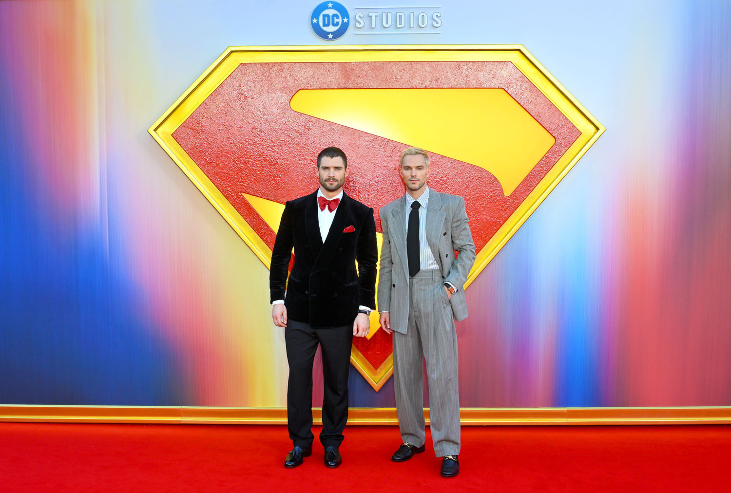 Nicholas, David Corenswet, and Rachel Brosnahan were at the Superman premiere in London and various other promotional appearances. Here’s Nick, wearing the sh-t out of this Bottega Veneta suit. I love that the jacket is slightly boxy, the loose fit of the pants, and of course that punk hair.