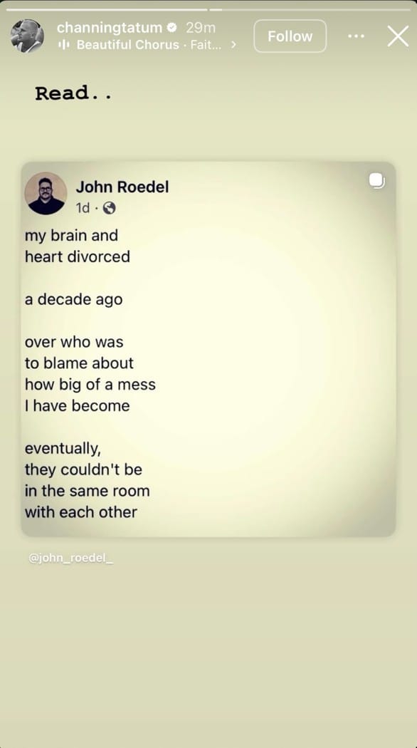 …which wouldn’t have been all that gossip-worthy had it not followed a screenshot also posted to stories but now deleted of an angsty poem about who the writer had become and a struggle between the brain and the heart.