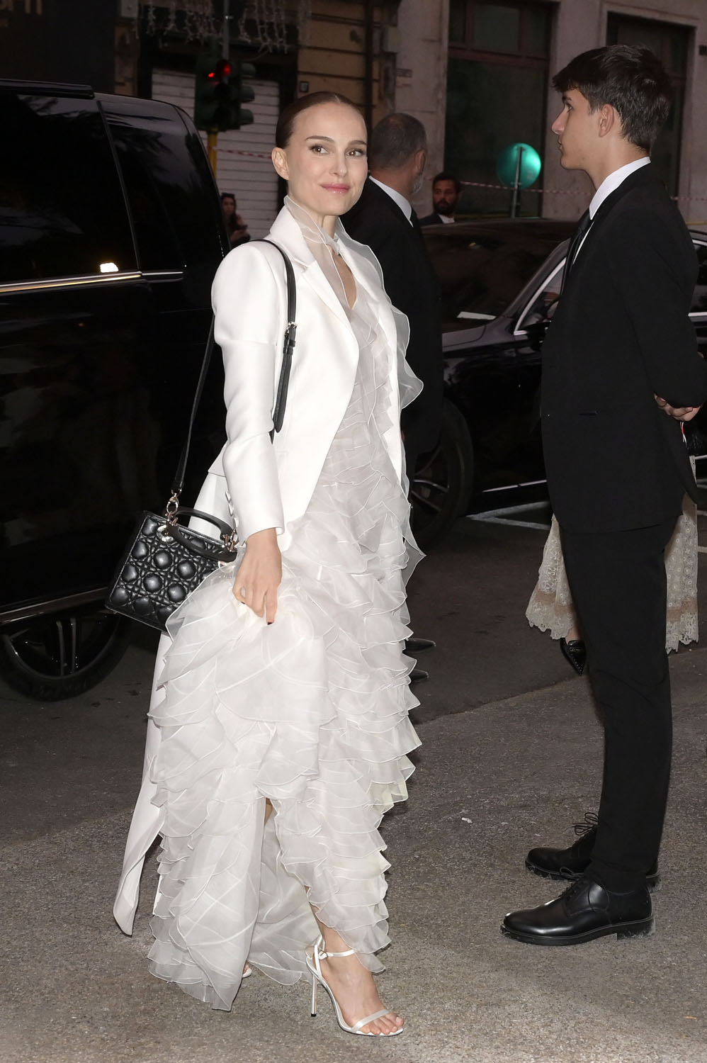 The other thing people are talking about is the dress code. Maria asked women to wear white and men to wear black, so it felt like a wedding. And Natalie Portman wore one of the most bridal looks of the night.