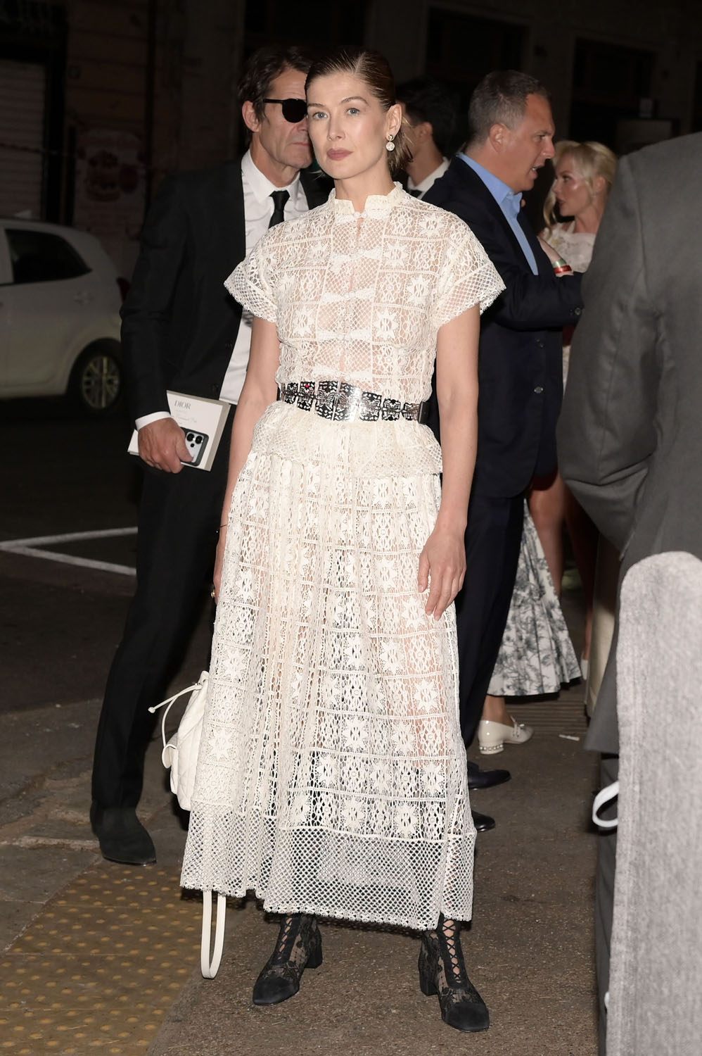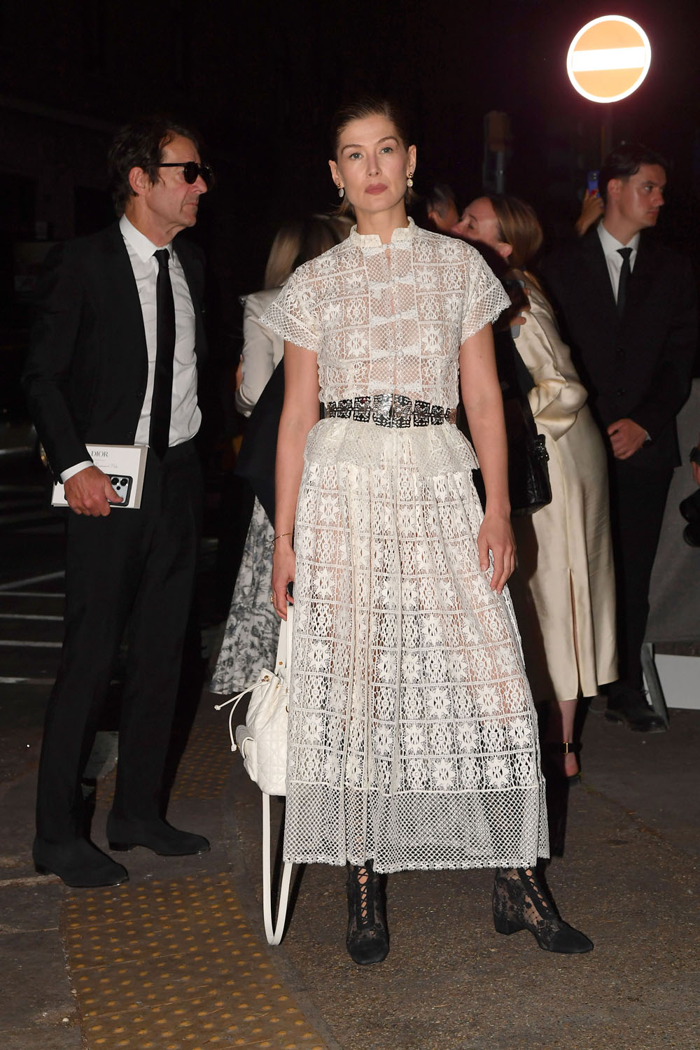 Rosamund Pike was also there, also in white, but less formal, less wedding coded. I’m surprised, though, that we didn’t see other Dior ambassadors there. Like Charlize Theron, Jennifer Lawrence, Jisoo, and Anya Taylor-Joy. If this really is Maria’s final bow with the house, and given their longstanding relationships with it, I would have expected more of them to show.