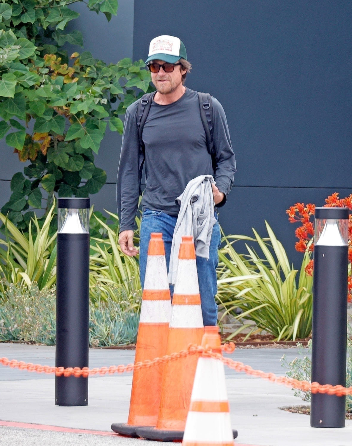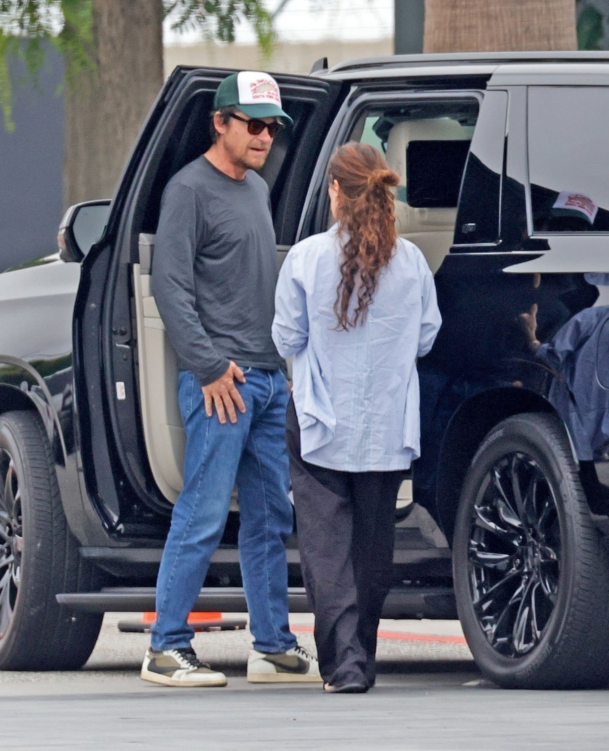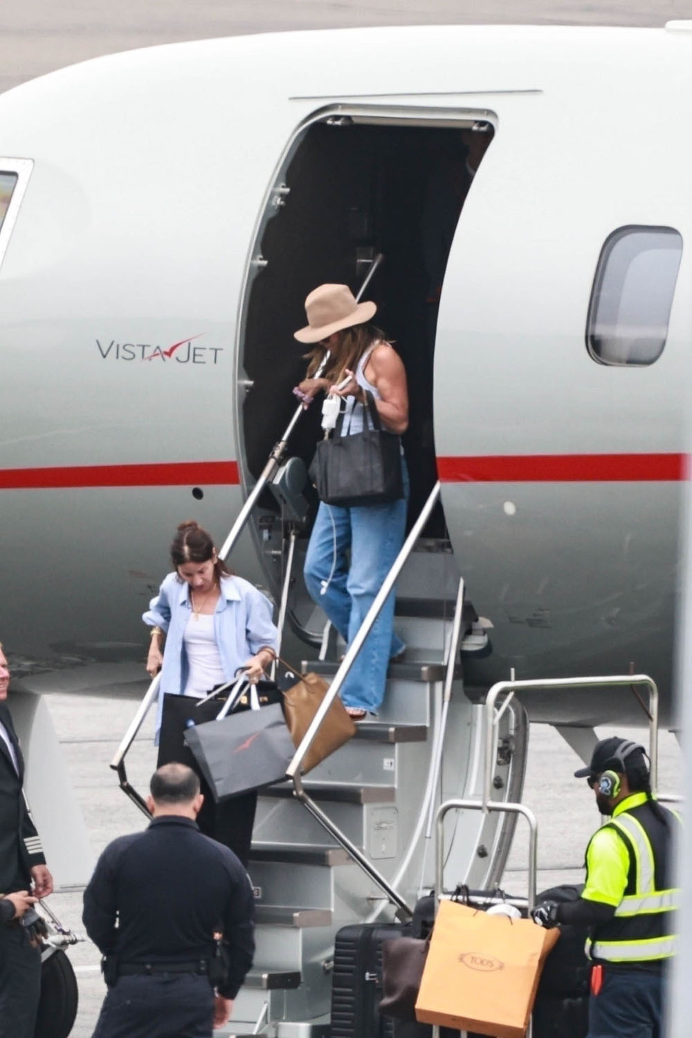 Here are some shots of Jen arriving back in LA after their holiday looking rested and happy. She flew with Jason Bateman and Amanda Anka, Jim wasn’t with them. But my focus is on her jeans because this is a new jeans fit for her. Jen Aniston, in my mind, where jeans are concerned, is most closely associated with the boot cut (ugh) or the boyfriend. This is a wide-leg baggy, very on trend, and excellent for travel.
