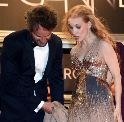 Here they are in Cannes for Lawless leaving the Palais after the premiere. Didn’t she shout Jason Clarke out on stage when she won her Golden Globe? Like, specifically him, out of all cast members of ZD30?
