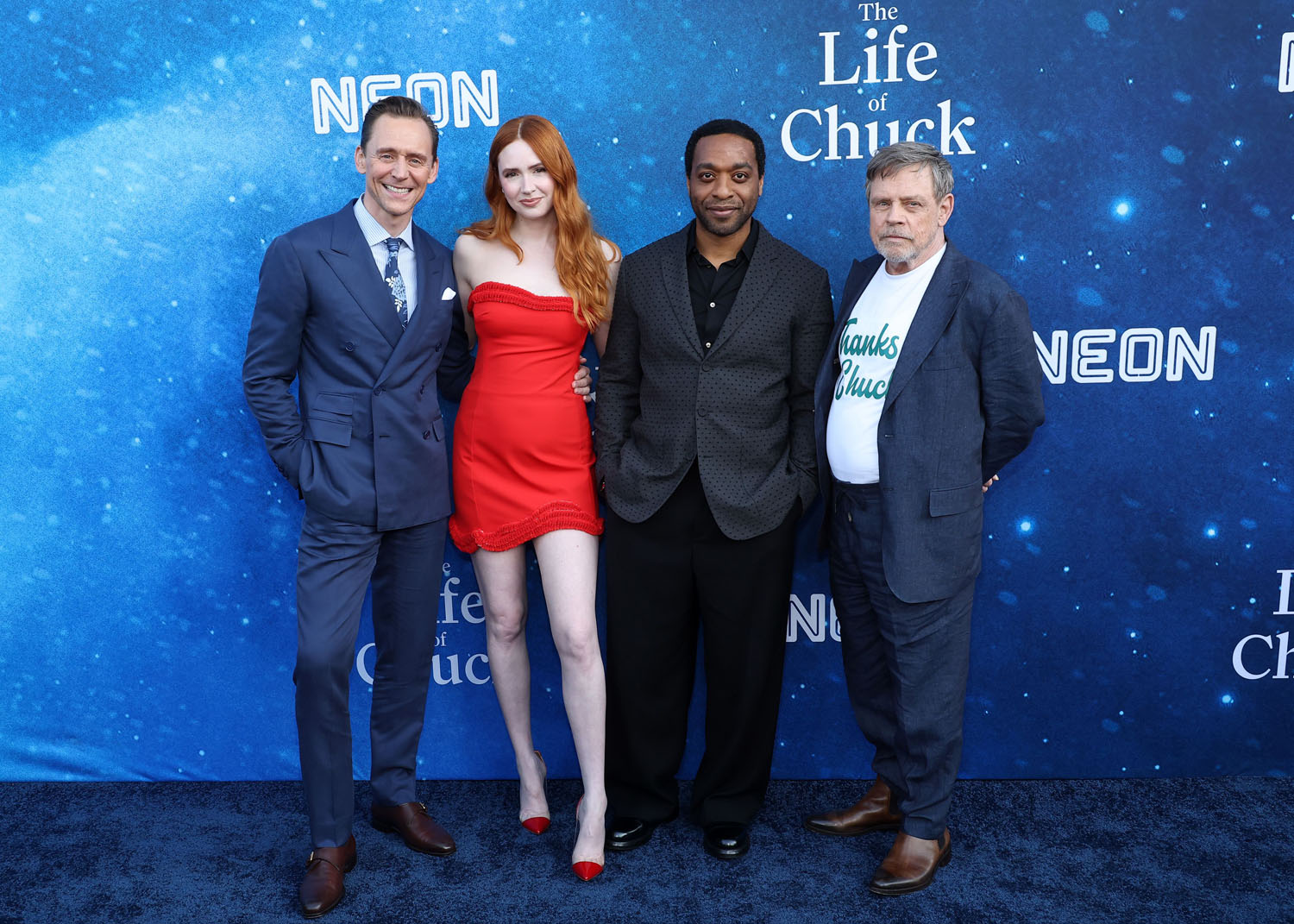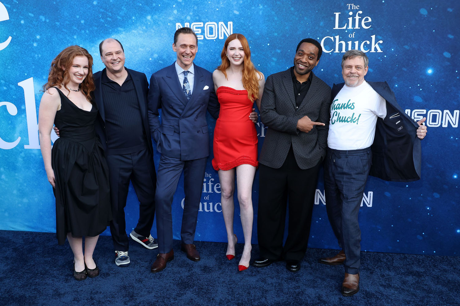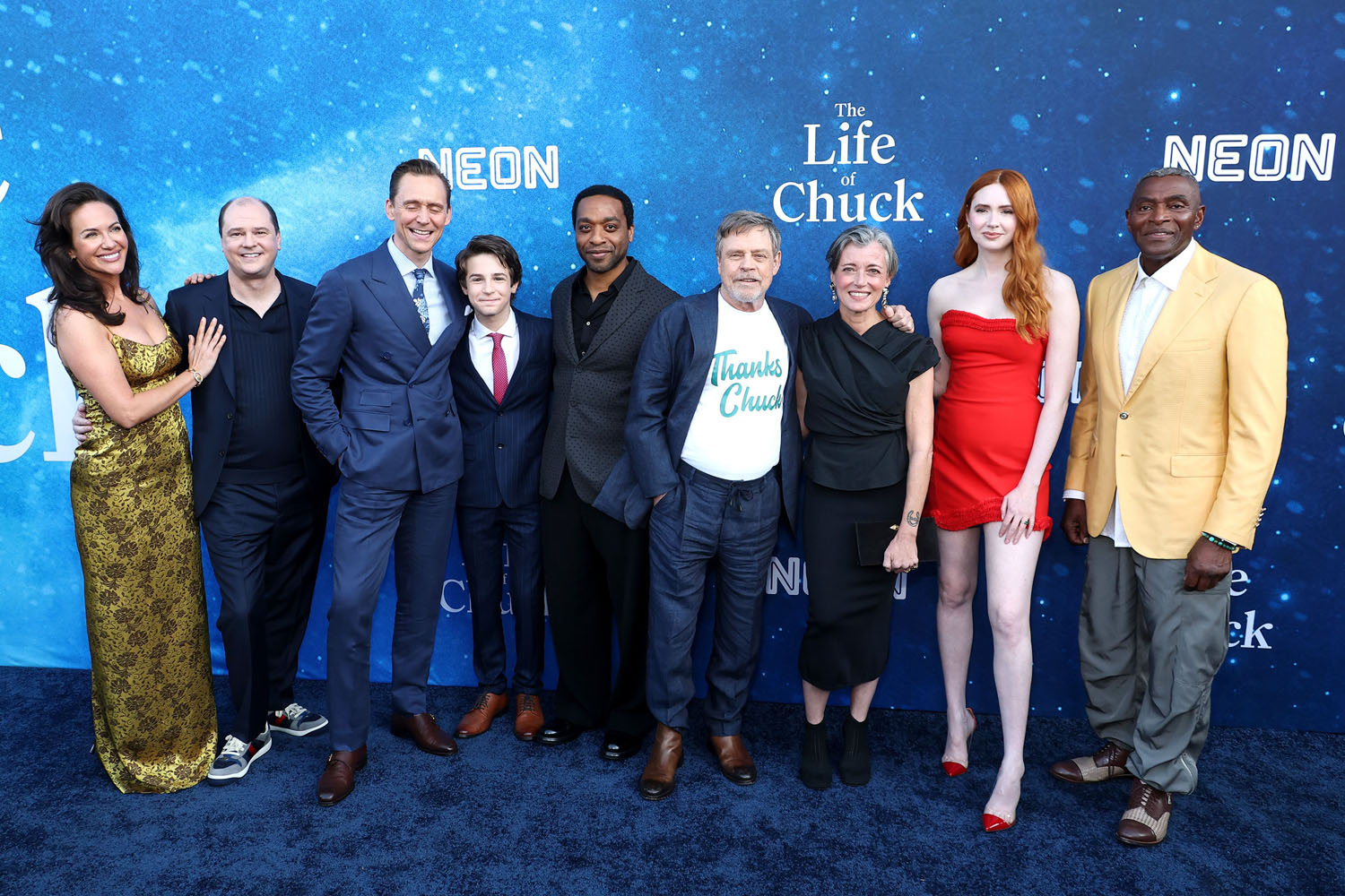 Here he is at the premiere of The Life of Chuck alongside filmmaker Mike Flanagan, and his co-stars Kate Siegel, Mark Hamill, Chiwetel Ejiofor, Benjamin Pajak, Mia Sara—80s queen! Live on!—Karen Gillan, and Carl Lumbly. I really enjoyed the film at TIFF, where it won the People’s Choice Award. It’s sentimental without being sappy and given how f-cking bleak the world is most days, its message hits even harder now than it did nine months ago: dance when you have the chance, and enjoy the moment you’re in, because none of it is guaranteed tomorrow.