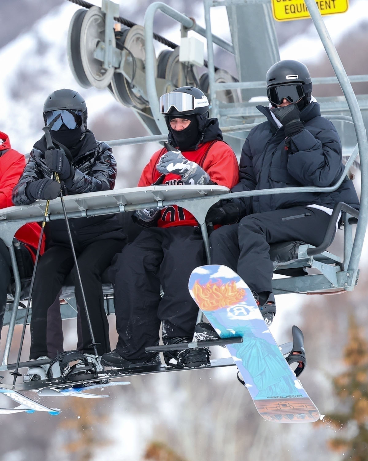 There have also been several sets of pap shots from the last three or four days of them snowboarding in Aspen. Kendall and Kylie Jenner have also popped in to spend time with Hailey.