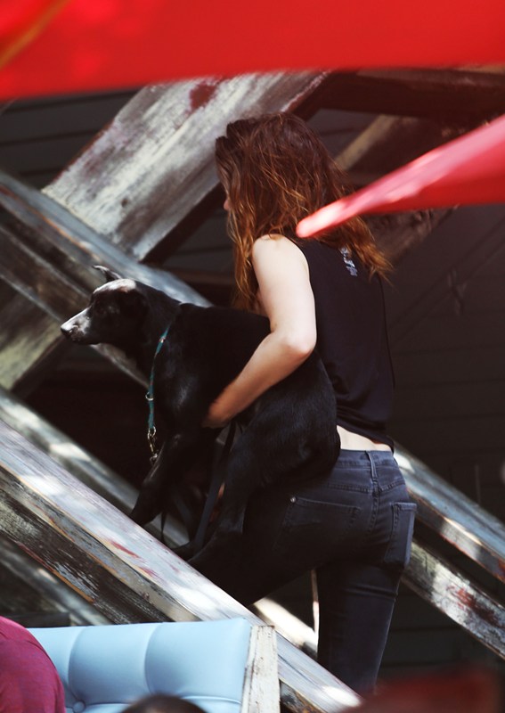 New photos of Kristen Stewart out in LA yesterday. She had her puppy with her. And this gives us an opportunity to discuss a story that appeared in the UK's Daily Mirror -- not exactly slum dunk with their reporting -- about Stewart enrolling at UCLA. According to the Mirror’s source: