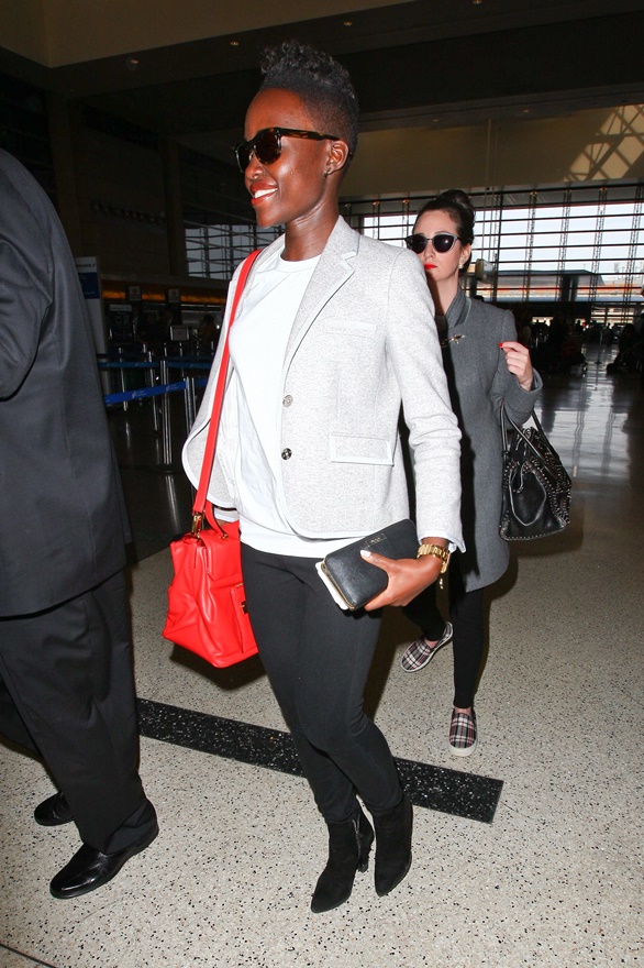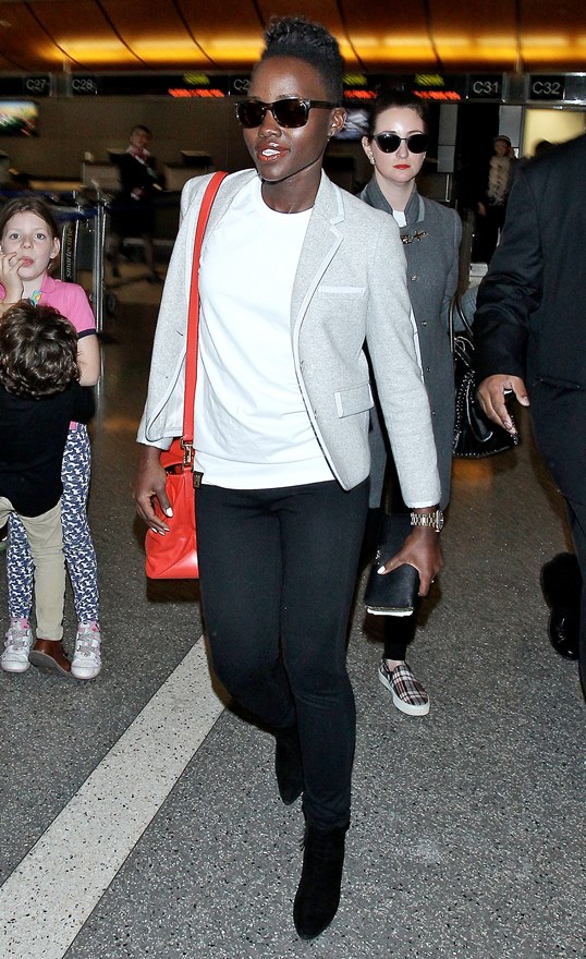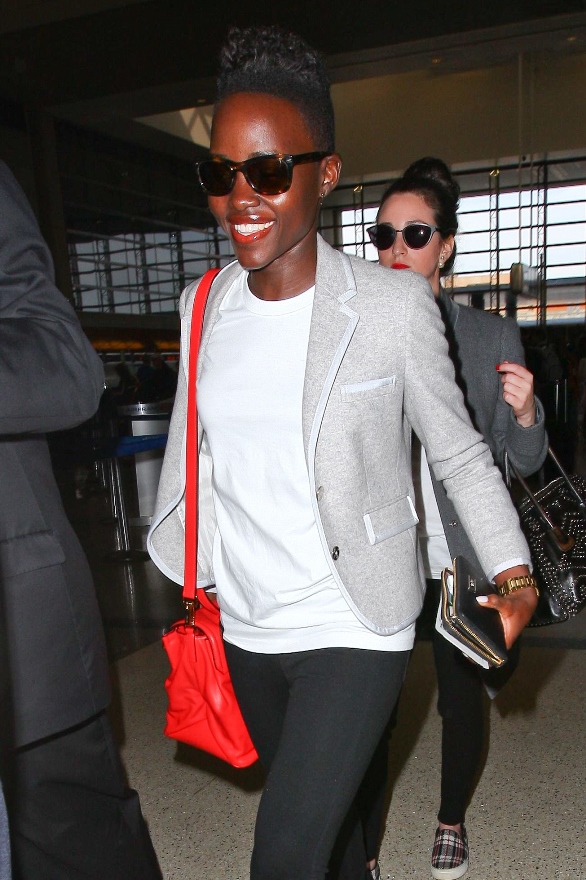 We’ve seen Lupita in a lot of cocktail and gowns the last few months. But we don’t often see Lupita’s casual steeze because until now, really, she hasn’t been a pap target. If her casual steeze is anything like this airport outfit, please, please we need more.