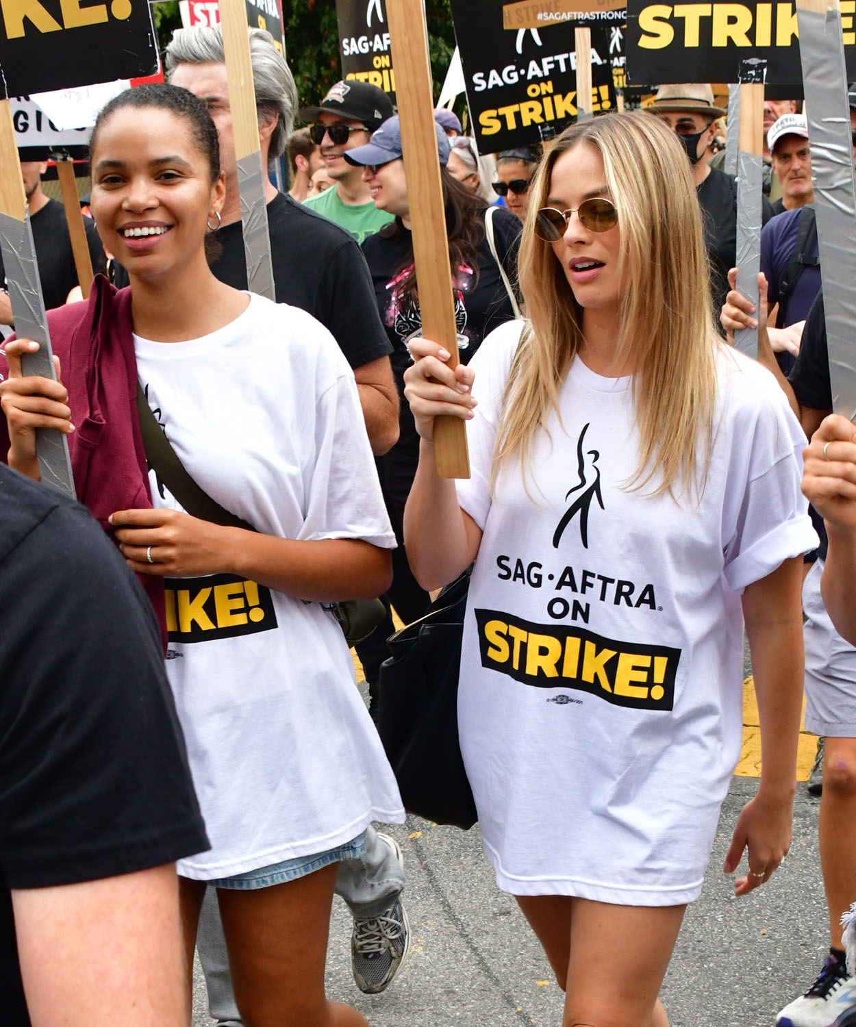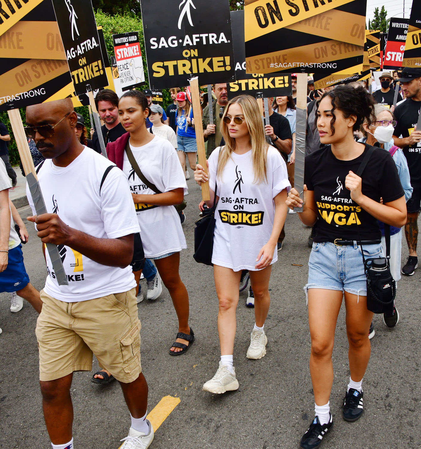 It was indeed a really good turnout featuring the biggest star of the summer, Barbie herself. Margot Robbie was on the picket line yesterday and, of course, in her SAG over-sized t-shirt, the pictures have been seen around the world and across social media. That’s the whole point.