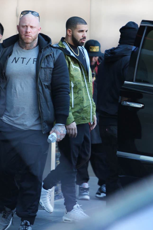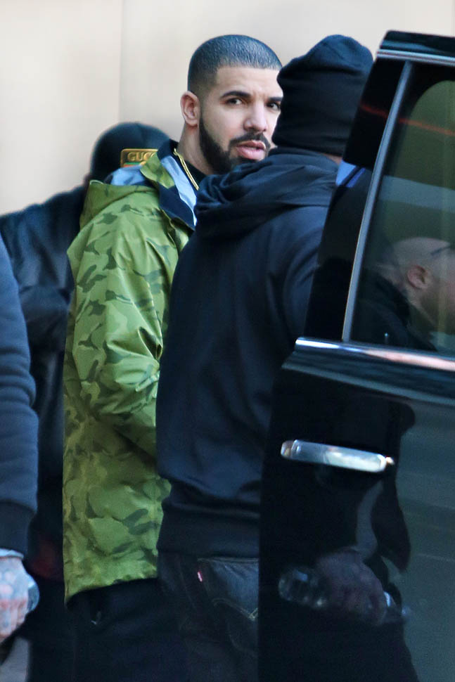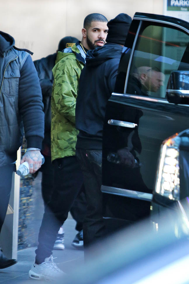 Here’s Drake in Toronto yesterday. Rihanna played Toronto last night. He did not join her on stage. They did hang out though. And there’s another show tonight. The one I’m going to. So… we’re all hoping.
