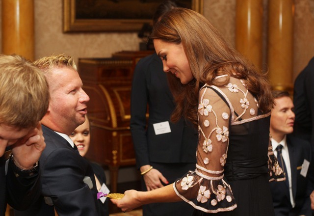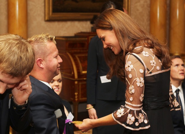 Catherine of William attended a reception in honour of Team GB athletes from the Olympic and Paralympic Games yesterday at Buckingham Palace alongside Her Majesty the Queen while her father-in-law Prince Charles hit up the Bond Skyfall premiere. She and Will have made separate appearances the last couple of weeks or so. Will is apparently now back in Wales at work. The other Captain Wales, Harry of course, is still in Afghanistan and, in a classically stupid story from the UK Sun, apparently reading aloud from his sister-in-law’s sister’s book, Celebrate. According to the paper’s sources, Harry jokes that Pippa’s his “wifey in the making” and entertains his army buddies by reciting pages from her party guide.