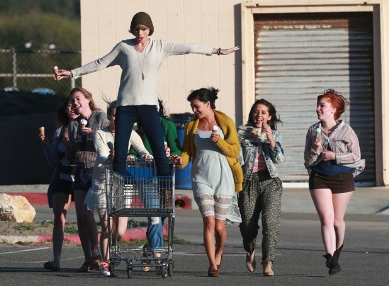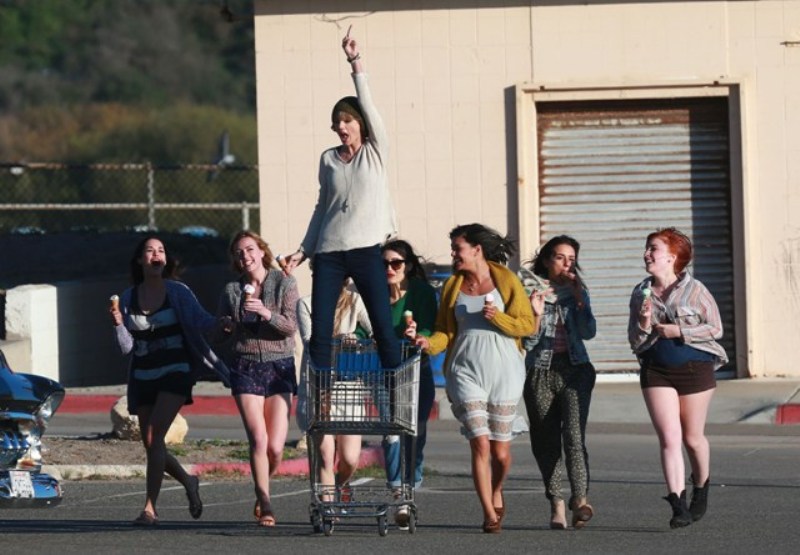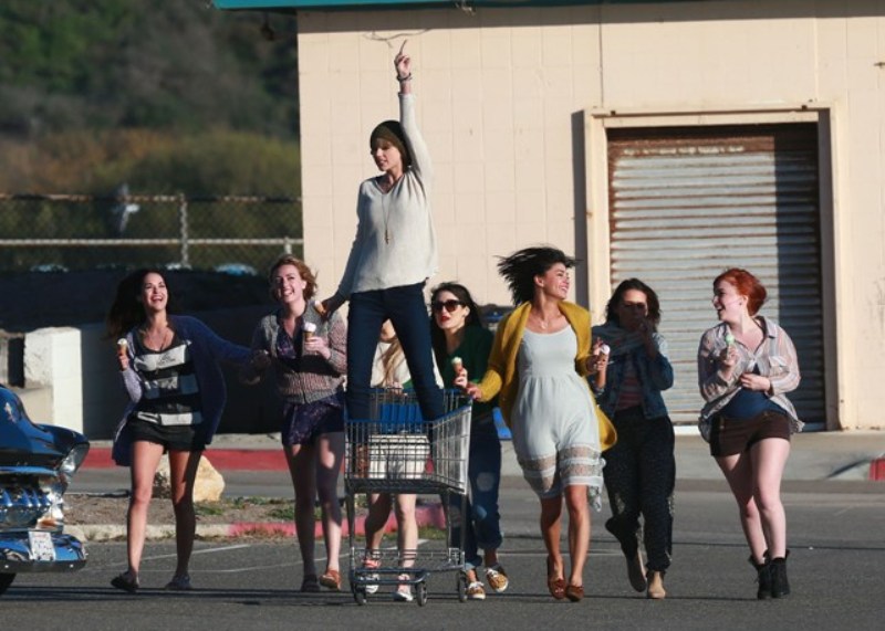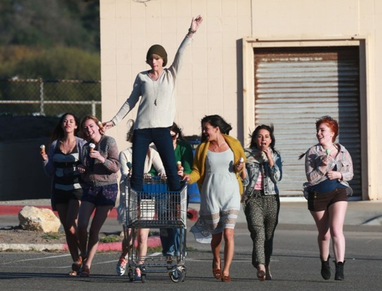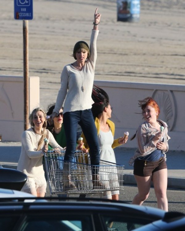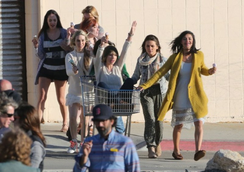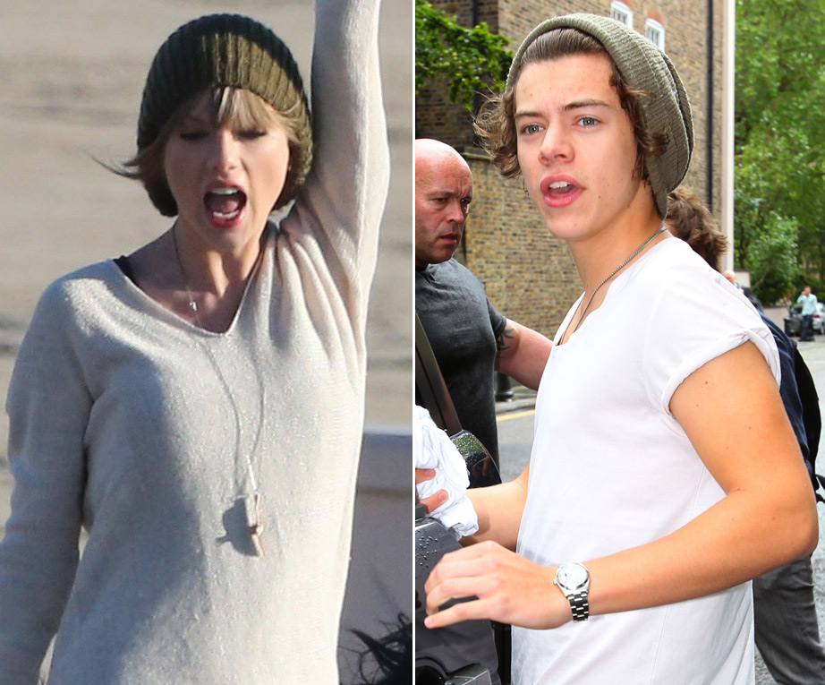 This is Taylor yesterday in Malibu shooting a video for her song 22. She’s wearing a green beanie. And already people, like a reader called Sarah, are saying that she’s doing it to mess with Harry Styles because he wears a green beanie often too...
