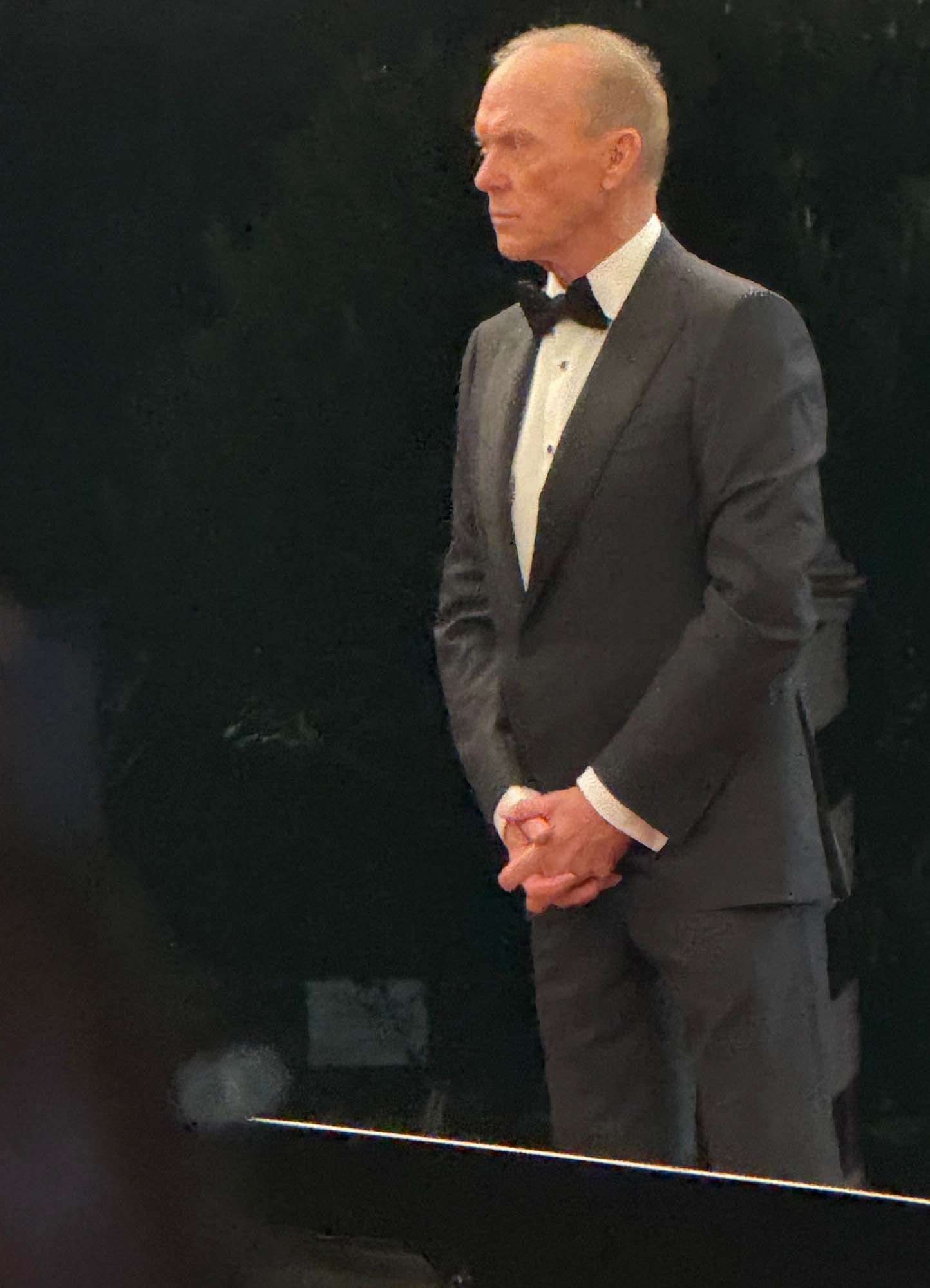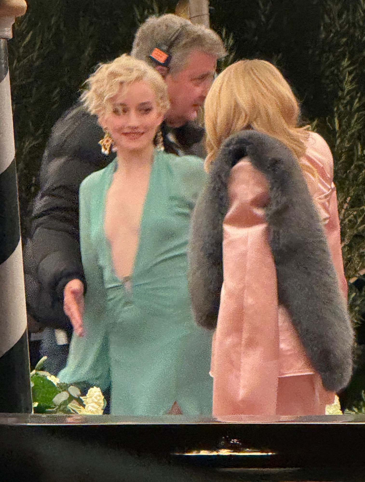 In these shots, Keaton is once again dressed in a tux, and Garner is wearing the same seafoam dress as before, and Madonna is in a suit of a coordinating shade of pink. Her character and Garner’s obviously have some kind of relationship; they’re coordinating red carpet looks. Mother-daughter, right? Seth Rogen really said, If you won’t make that biopic with Julia Garner, I’ll just cast her as your daughter and call it close enough.