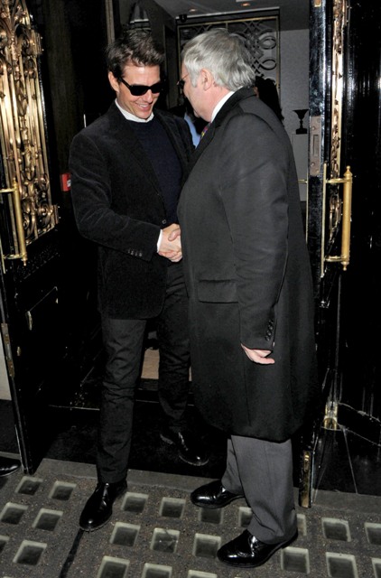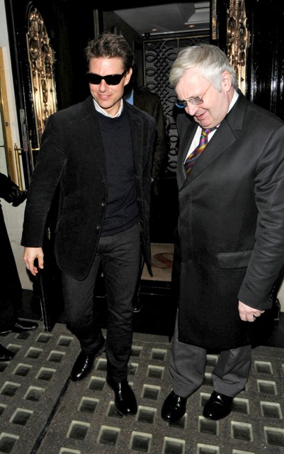 And here he is, in London last night, after dinner with Ridley Scott. That’s the second time in less than a month that he’s met with Ridley Scott. Maybe they’re working on a new movie.