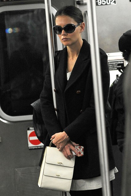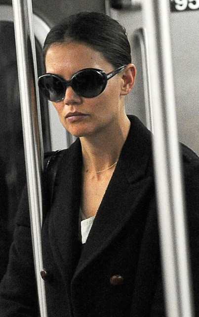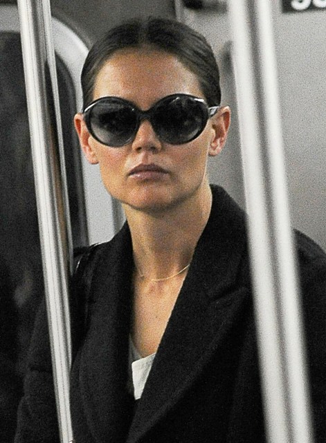 Meanwhile, oh look, Katie Holmes rides the subway to work in New York again. So Tom sees Ridley Scott more than he sees Suri and single Katie’s roughing it with the people as Courage Mom on public transit. See? Even when she doesn’t mean to she’s f-cking him on every corner.