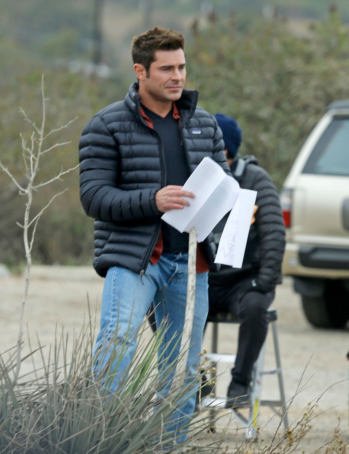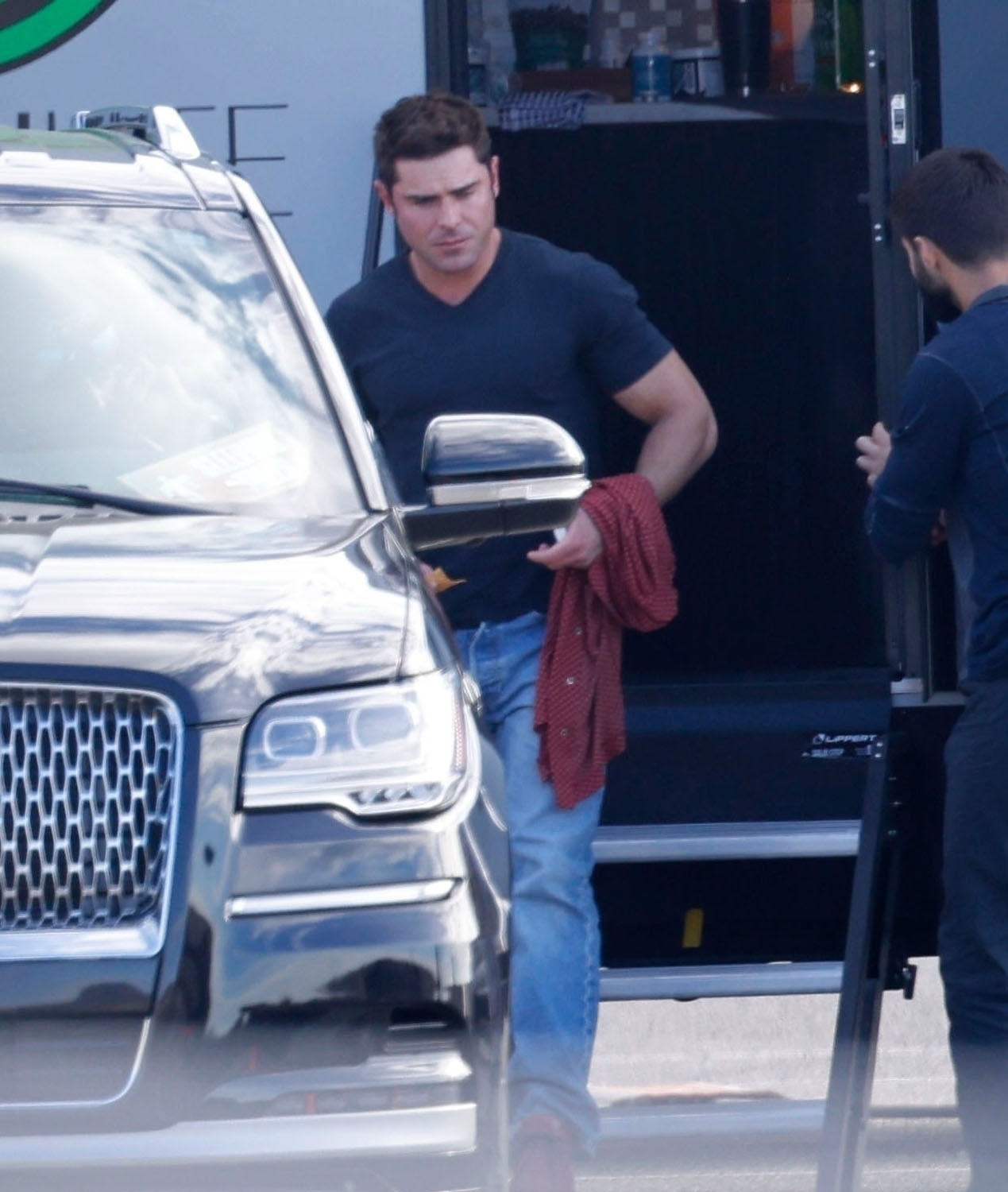 Here they are shooting Famous in Malibu yesterday and it’s not a teen rom-com but psychological thriller about celebrity in which Zac plays two characters – an actual famous star, James, and his lookalike fan, Lance, who would do anything himself to become just as famous. Lance has studied everything about James, even his movements, and then relocates to LA to, I think?, Single White Male his doppelganger.