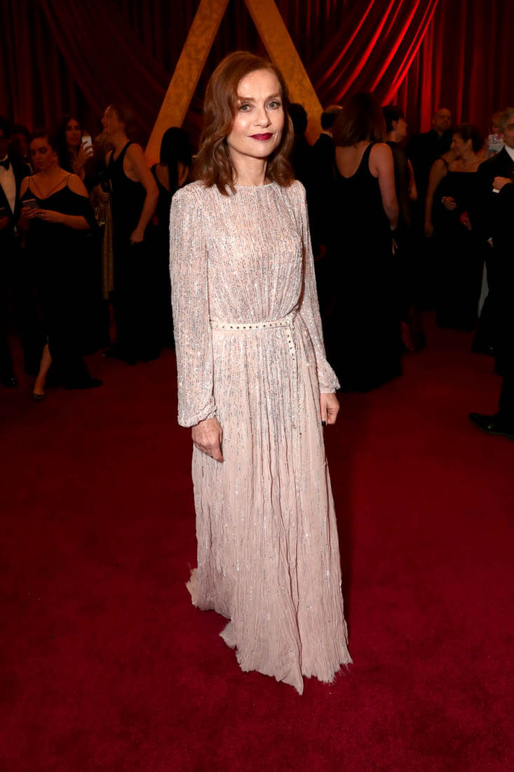 I really thought it was Isabelle’s though. I thought she wore a Best Actress dress, a dress that will hold up for decades. But silver is not gold. And gold won the night. Although at the Vanity Fair party, red won the carpet for Isabelle because this outfit, this red sheer blouse that’s tucked in so perfectly that it looks like it’s a mini-peblum from some angles, and the perfect red pencil skirt with the hip pockets, is just so stylish it’s really too bad she couldn’t have accessorised it with a trophy.