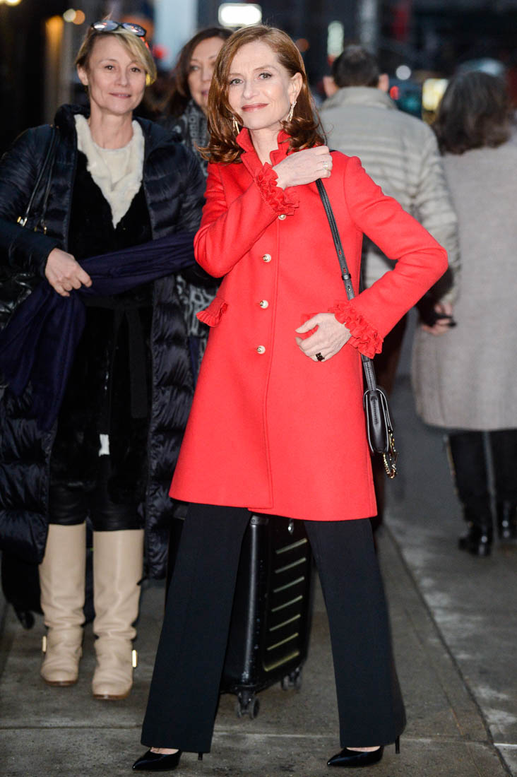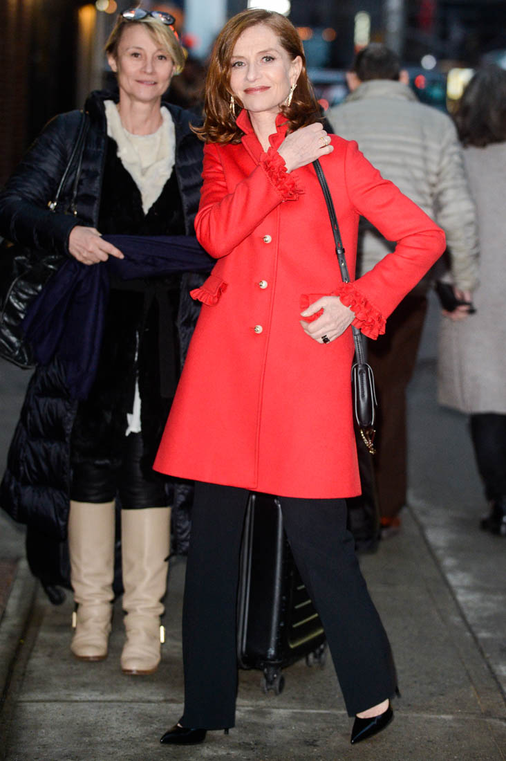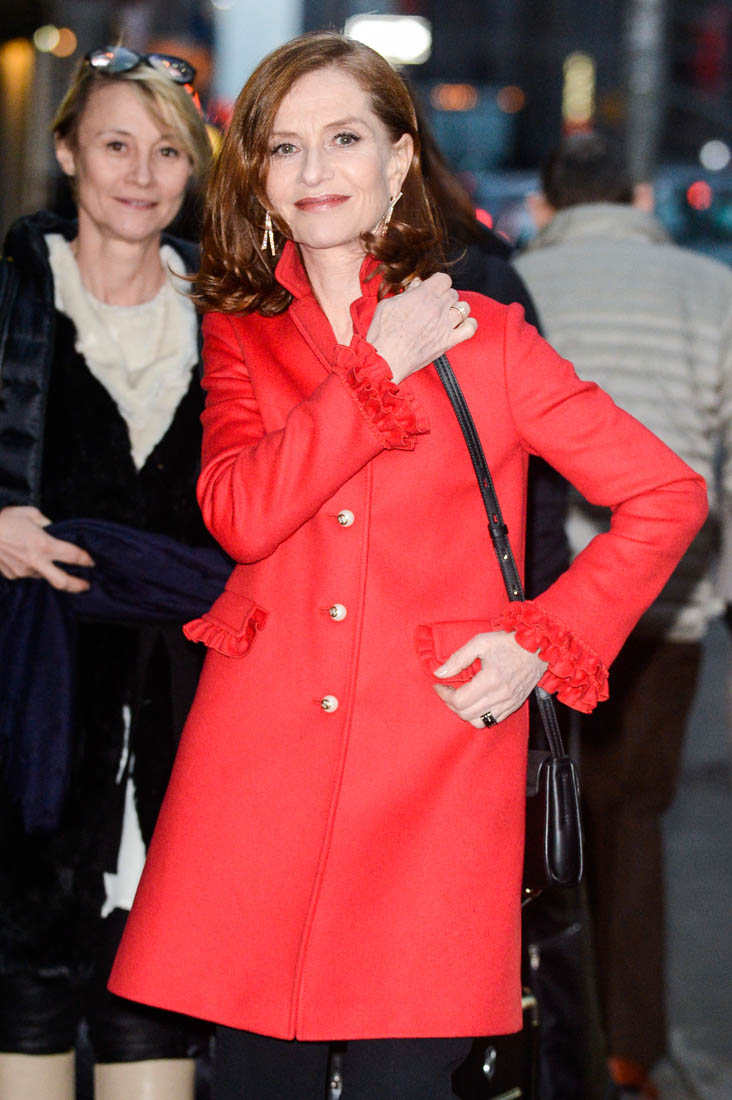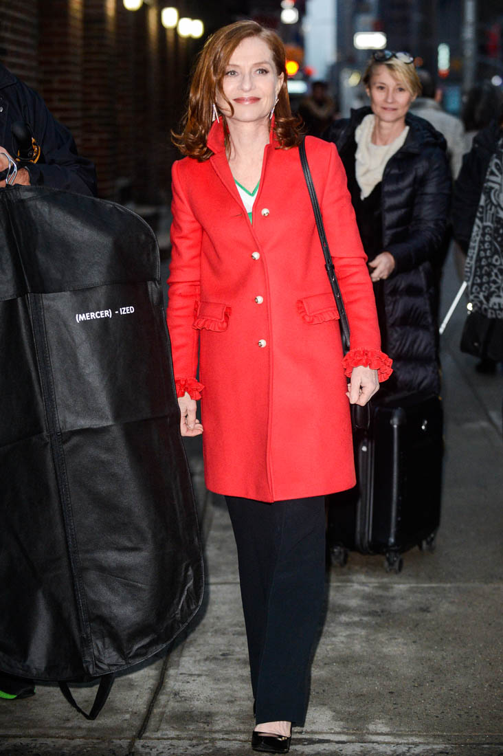 Watching her with Colbert last night reminded me of the article posted at Gold Derby earlier this week about the Best Actress race. There’s a passionate pro-Huppert contingent among Academy voters. And then there’s this paragraph: