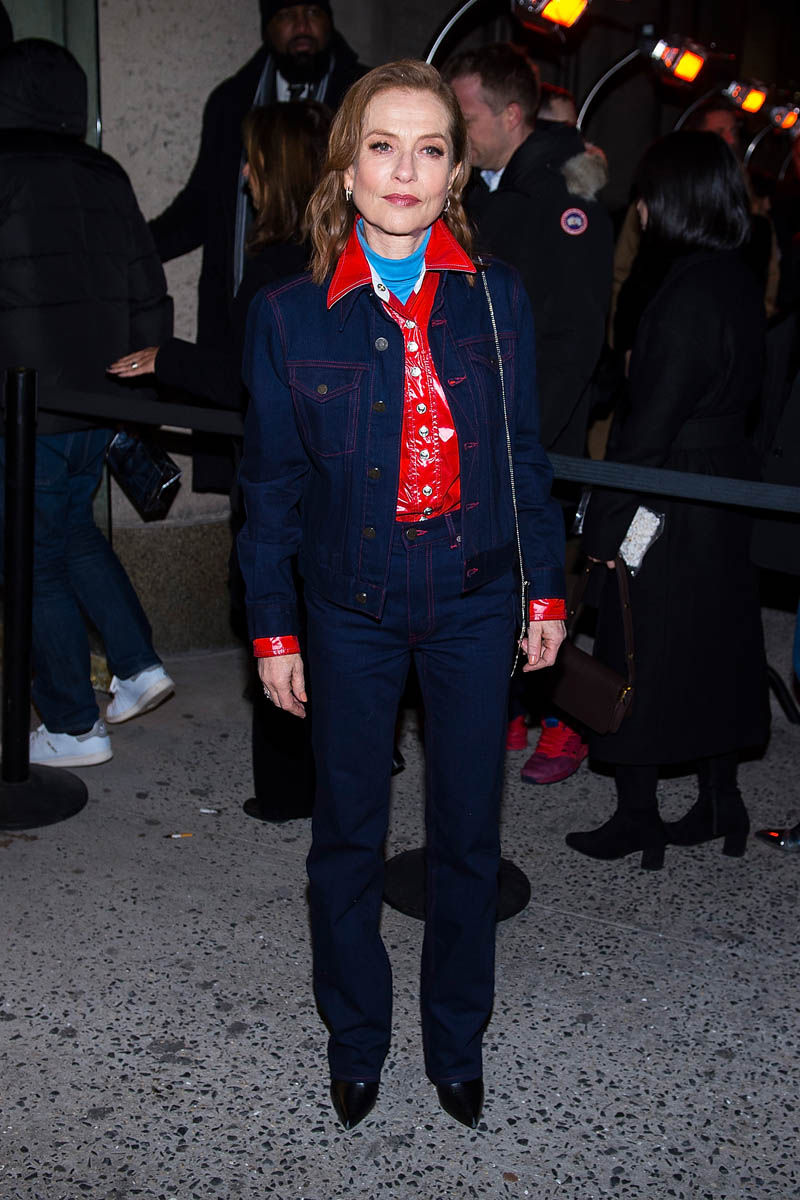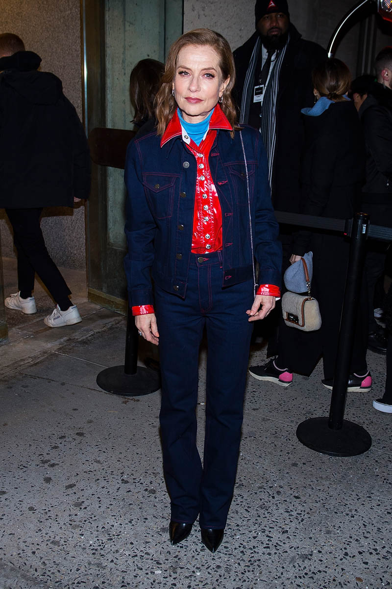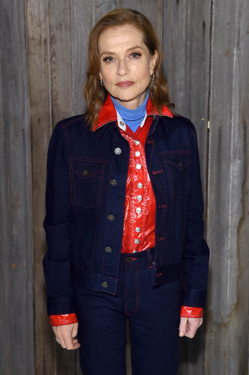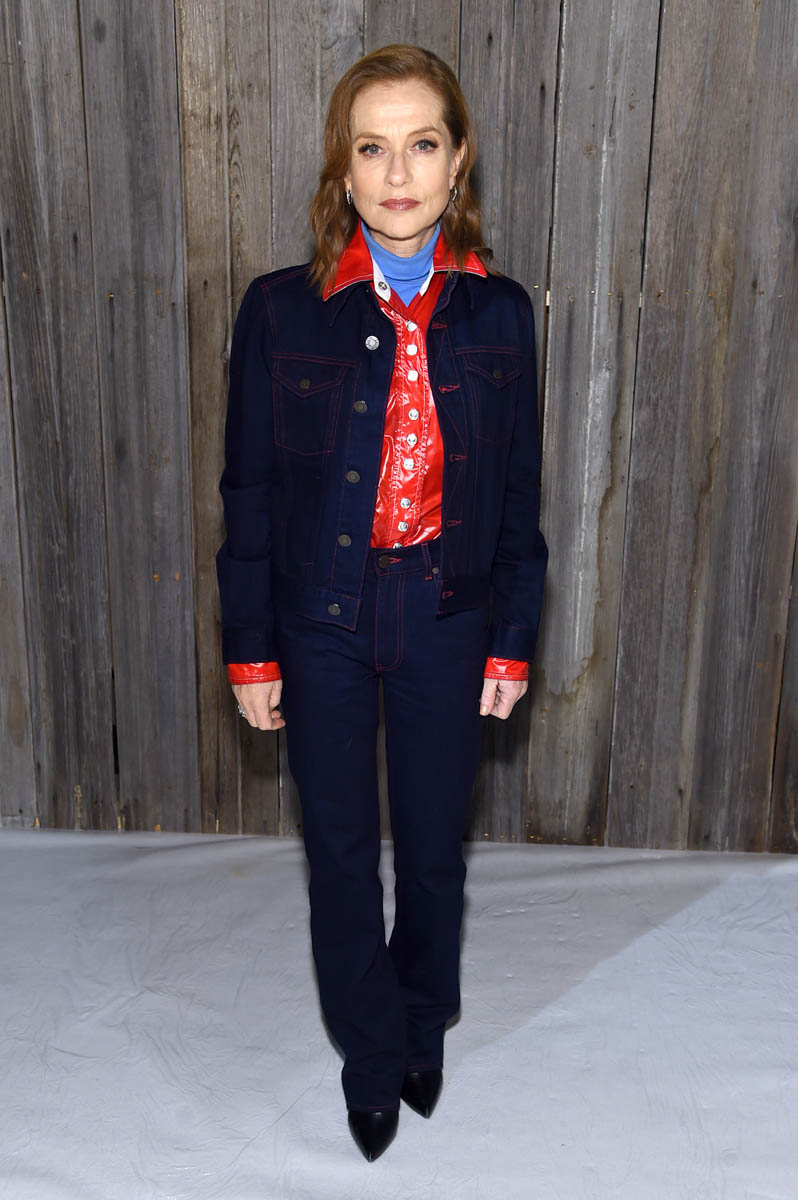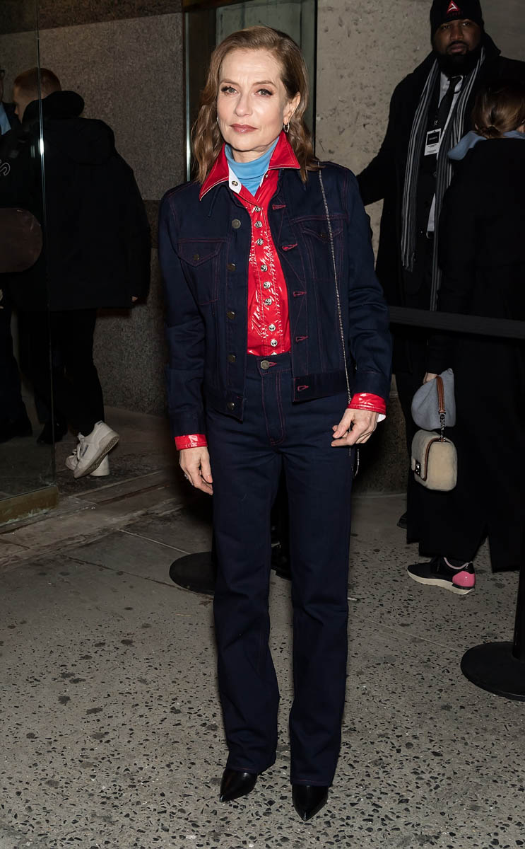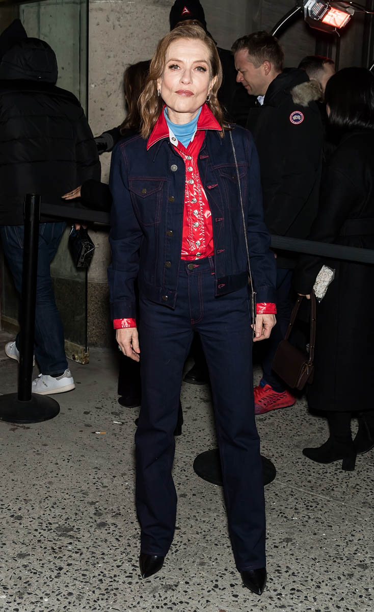 Look at Isabelle Huppert. There’s nothing outrageous here about Isabelle in dark denim on denim over a red shirt over a blue turtleneck. SO good, right?