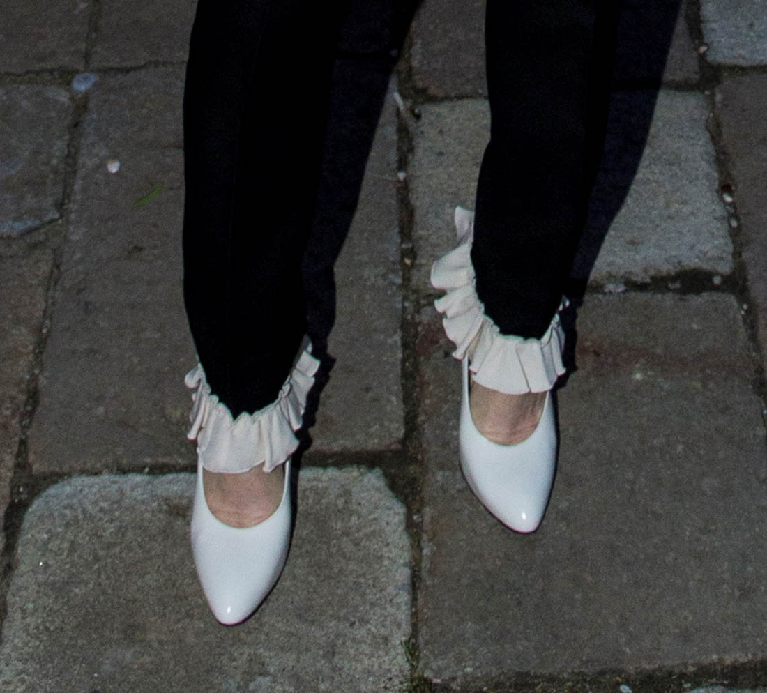 Because it’s not just extra long white lace cuffs at the wrist, it’s also white lace cuffs… around the ankle!