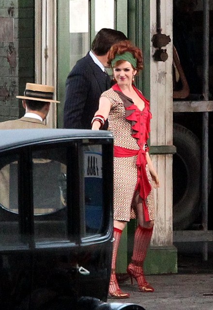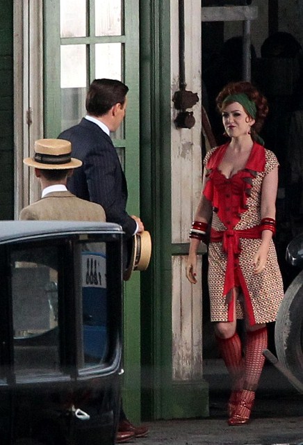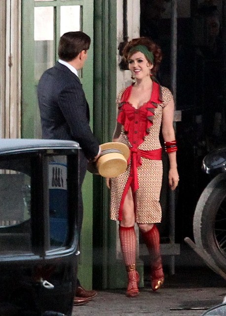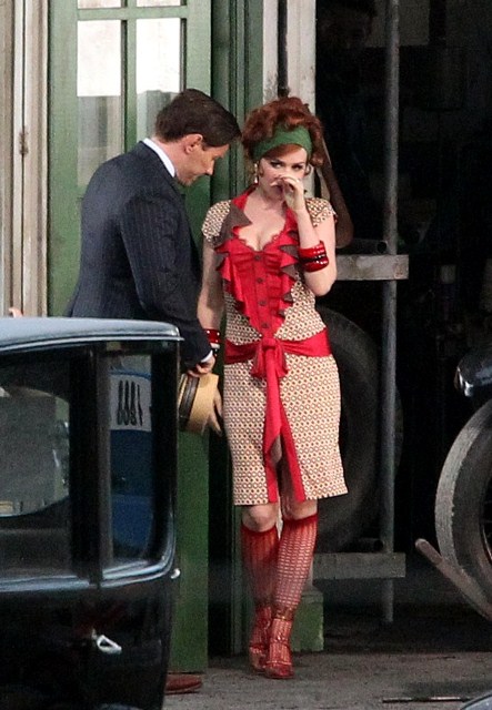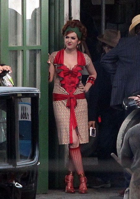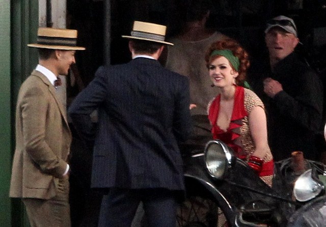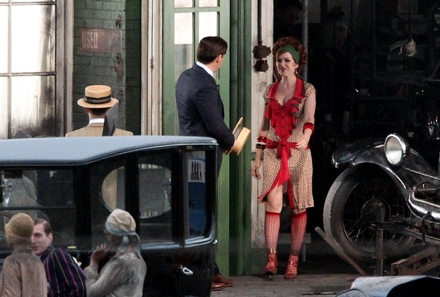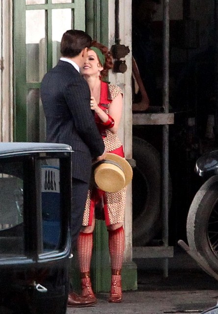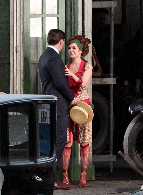 Check out Isla Fisher in costume as Myrtle Wilson in The Great Gatsby 3D (which isn’t the official title but the notion seems so ridiculous it may as well be) shooting in Australia opposite Joel Edgerton as Tom Buchanan and Tobey Maguire’s Nick Carraway. I think I might love her as Myrtle, just looking at her body language as they film a scene during which the two adulterers can’t keep their hands off each other. Her costume is a little obvious but the body language, I mean, for sure - that is a girl who is hungry for a higher station and dumb enough to believe his lies.