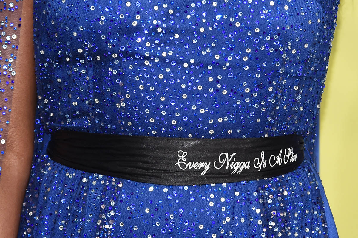Issa Rae is the first black woman and woman of colour to host the CFDAs. She’s worn the n-word on her clothing before on Insecure (this Omandi sweater is amazing) but I think she chose to wear this belt on this night to, like she does so often, rep for her culture. She’s saying to all the black people watching, “I see you, I’m here for you and because of you.” She’s reiterating that sentiment that has now become her tagline: