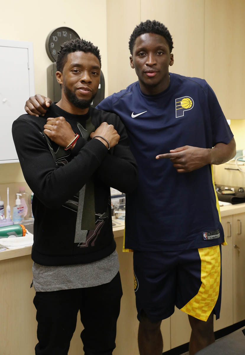 T’Challa hands off to @VicOladipo for the assist. #BlackPanther #NBADunkContest #NBAAllstar pic.twitter.com/uDtqYnu6uR— Chadwick Boseman (@chadwickboseman) February 18, 2018