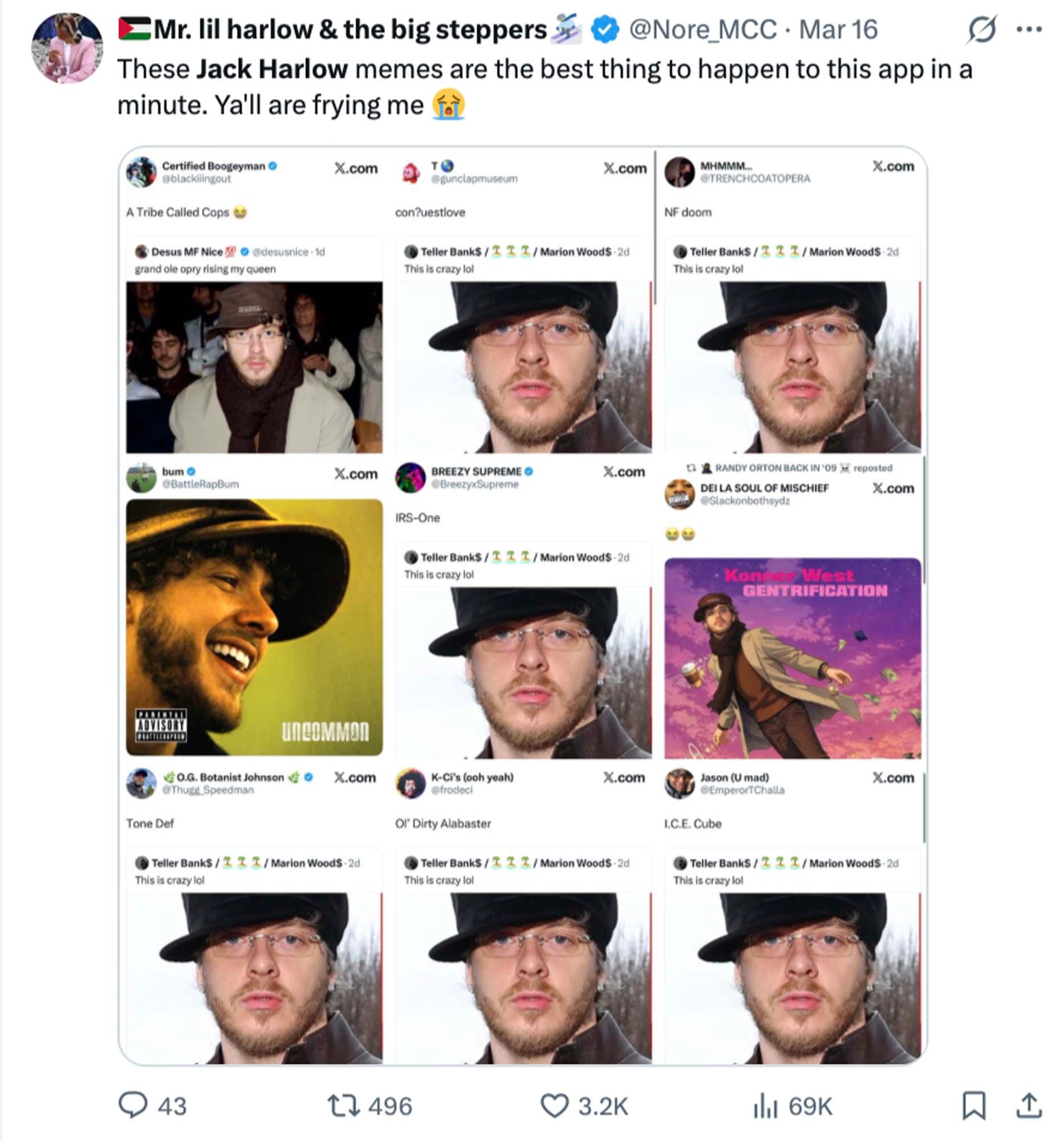 I commend the question Joe and his cohost Jon Caramanica were trying to ask, though they seemed to have a hard time getting it out. It was a layered question about whether white artists have an easier time than Black artists moving in and out of genres (which, yes, they absolutely do). And why (unlike other white artists who pivoted into country or rock after being successful in rap, artists like Post Malone and Jelly Roll) has Jack chosen to delve deeper into R&B – or his version of it at least. And rather than answer either question, he said he ‘needed to think about that’ and went on to flip it back on them. At this point, I knew I was done with Jack Harlow.