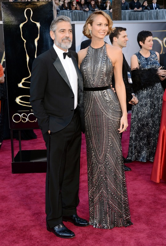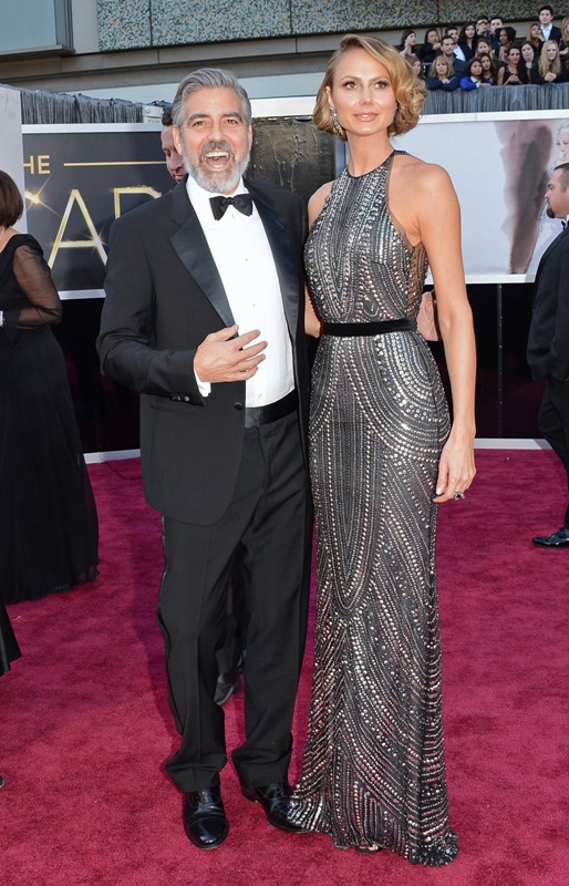 As for George and Stacy Keibler -- every time I saw them they looked solid. And I’ll always have something to compare it to. I saw George when he was on his way out of Elisabetta Canalis. I saw him when he was just getting into Stacy. He’s still there. Our etalk balcony camera even shot them quick-kissing on their way inside the theatre -- that’s on the show tonight. And she’s still playing it right. Like a royal consort. Never walking ahead. Never getting too close when inappropriate, never straying too far. And still dressing with a lack of imagination though marginally improved in that at least it’s that tacky anymore.