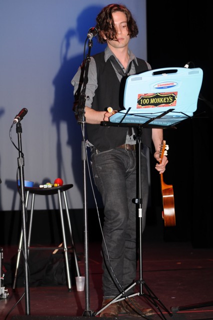 This is Jackson in New York at the WordTheatre Pushcart Press benefit reading from prize-winning story "The Bank Robbery" by Steve Schutzman. Jackson then also performed with his band at the afterparty.