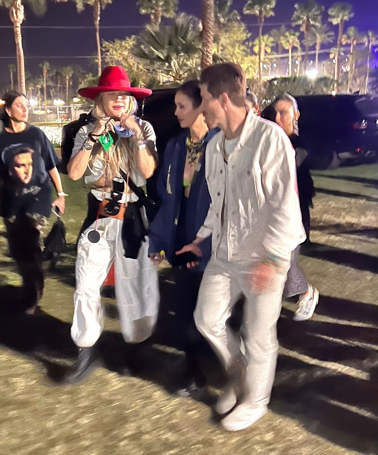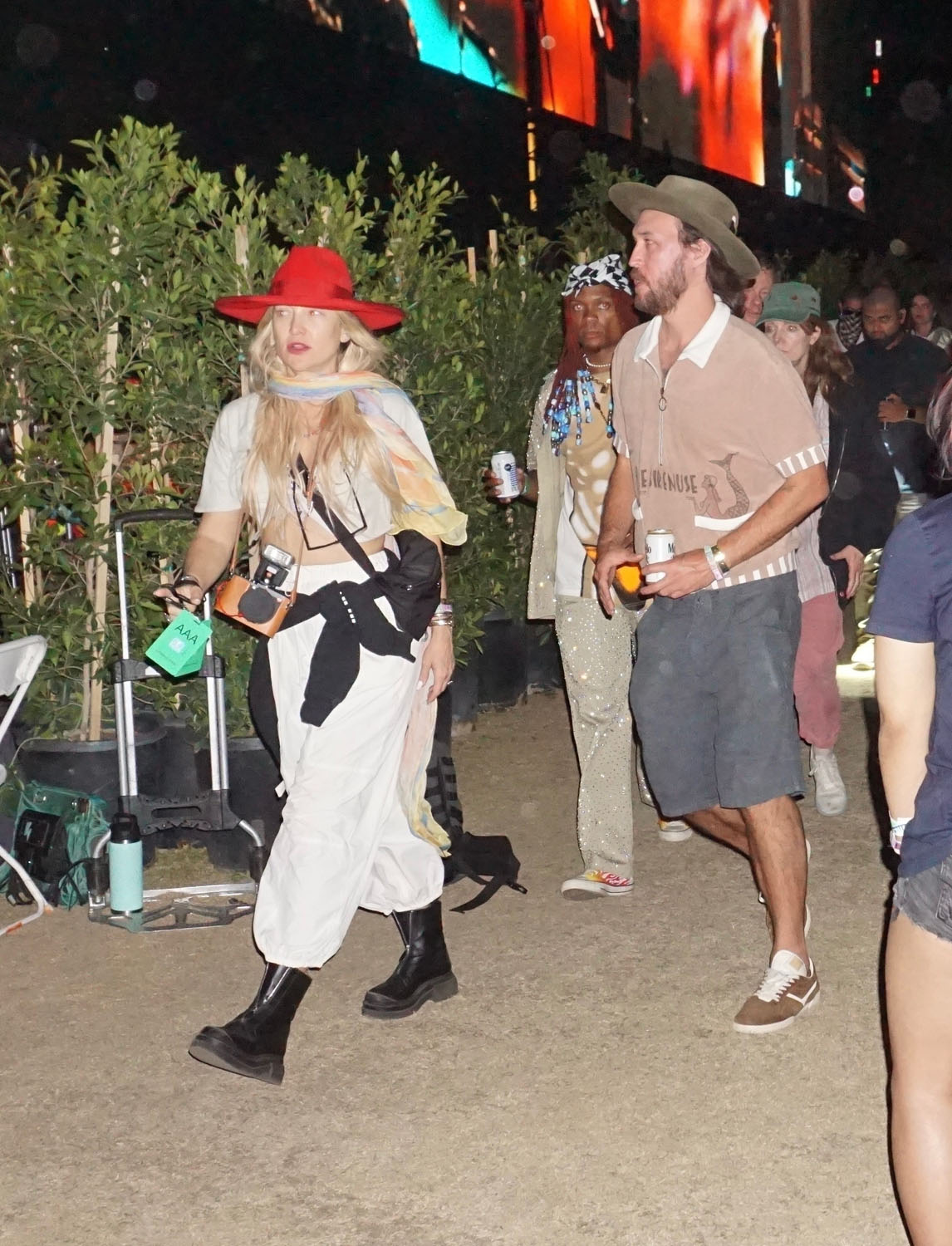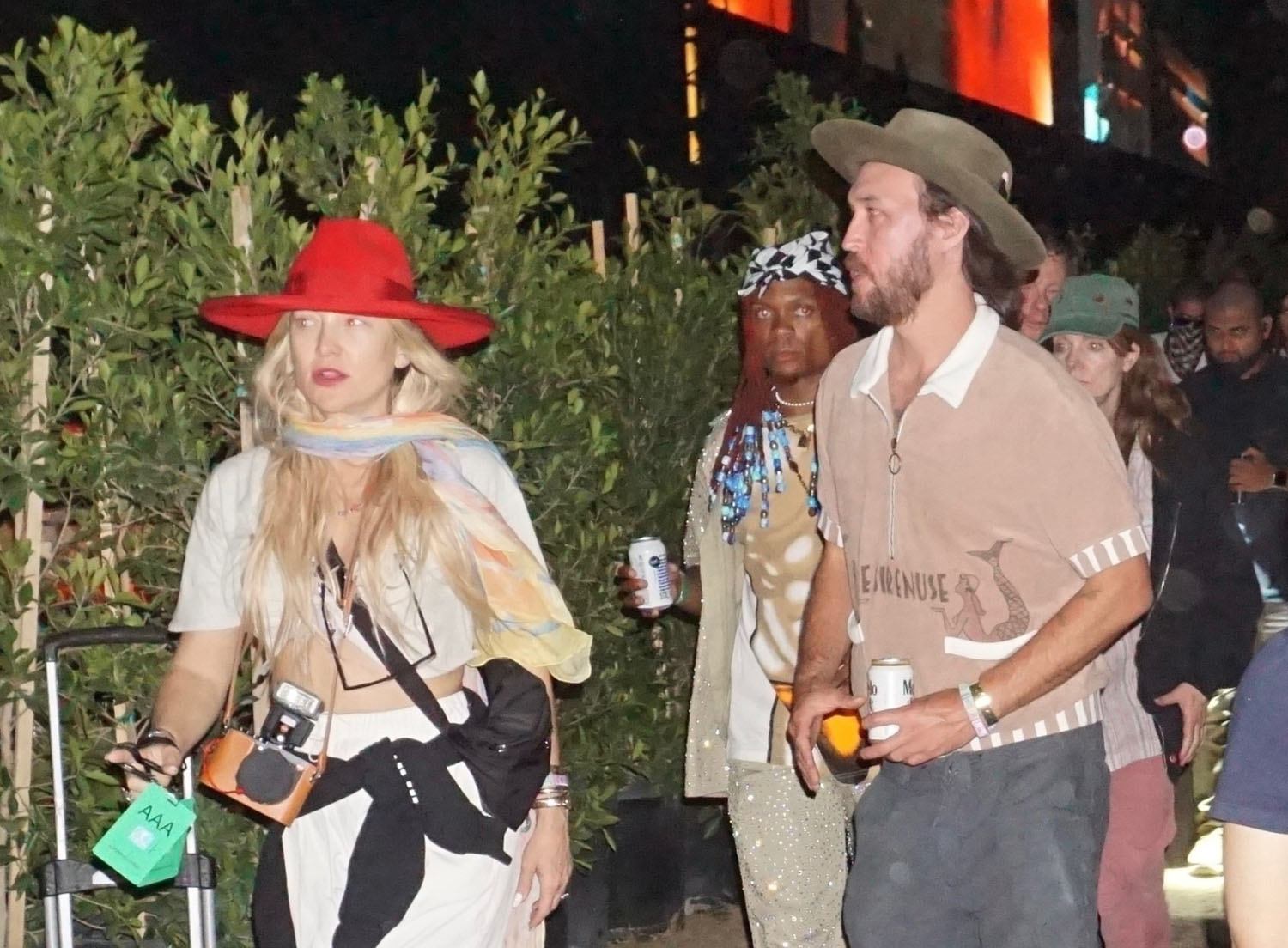 Like Leo, Kate Hudson is a Coachella regular and she was spotted this weekend in a red hat because at Coachella, if it’s not a flower crown, it’s a hat. Never a baseball cap but a statement hat.