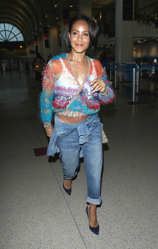 Jada and Tupac were really close. Jada confirms that they were the best of friends but that it was never more than that. She wanted it to be, but the chemistry just wasn’t there. What eventually drove them apart though was that his “revolutionary” spirit had no direction. And the darkness in him when he came out of prison. She wasn’t interested in that kind of lifestyle. He thought that she’d “gone Hollywood”, that she’d lost her edge. The saddest part, the way she tells it, is that she felt that he was starting to come out of that negative headspace at the time that he was killed. You can feel the emotion there. You can hear her love, how moving it was for her to go back to those memories. I could listen to her talk about that past for days. I suspect it’s the same for you if you too grew up in that past. When was the last time you saw Poetic Justice? I might have to Netflix that this weekend. Here’s Jada at LAX last night.