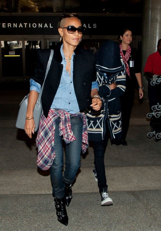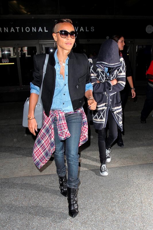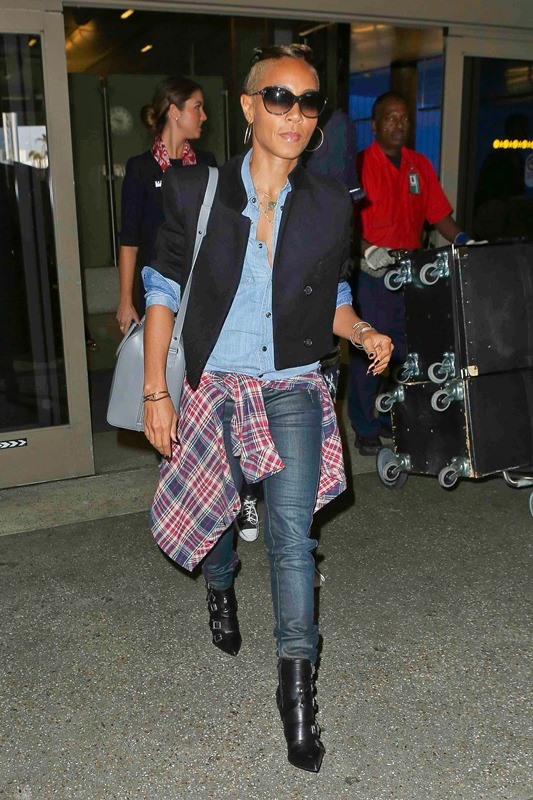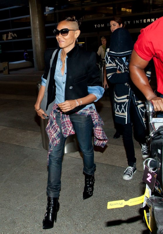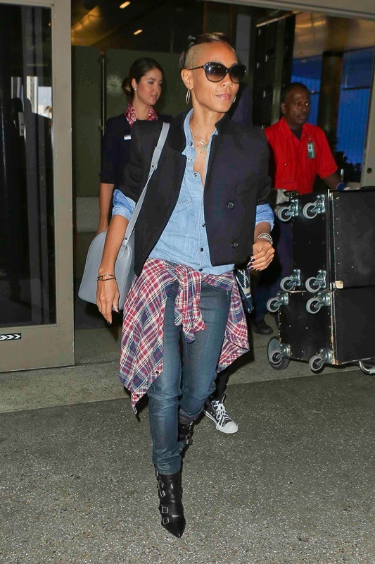 The fresh buzz is badass. The fit of her blazer is amazing. The plaid shirt around the waist makes no sense but whatever, I’ll go with it. The bag is gorgeous. The boots might be painful but they’re sick. I wish I could jack this entire look, top to bottom.
