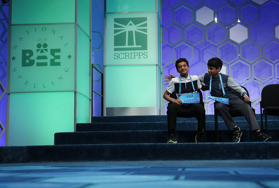 Wednesday night it was Beyoncé. Last night it was the Spelling Bee. A total Nerd Bowl. I love the Spelling Bee! I sweated through an entire set of pyjamas watching the Spelling Bee. And these two finalists, Jairam Hathwar and Nihar Janga, were particularly – and unintentionally – theatrical. Untrained stage performers who somehow brought the most drama. They fist-pumped. They quipped. They smirked. They hung their heads at particularly suspenseful moments. They hugged each other when they were told of the possibility that they would win together and made everyone cry. It was the most riveting television reality. How about the expressions (barely disguised disappointment) on their faces when they knew the other was about to get it right? Or Nihar shaking his head when Jairam was getting it wrong?