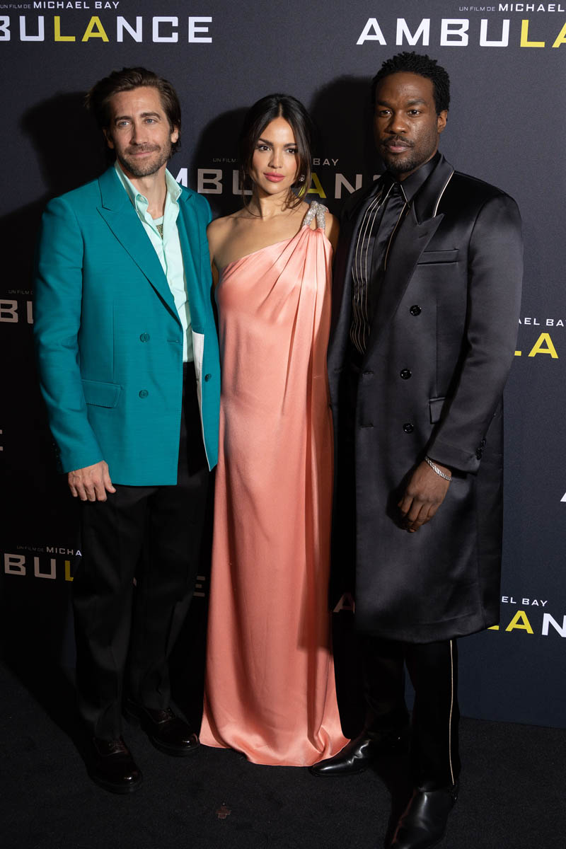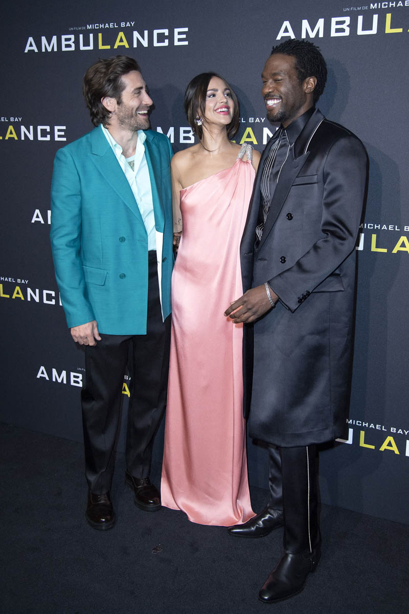That was for a group shot though. Jake wasn’t giving up any photos of just him with Jeanne – at least on that night. Last night then was the first time Jake and Jeanne walked a carpet together, at the Paris premiere of his new film Ambulance. It’s been a while since he’s been this public in a relationship, like this might be as public as he’s been since Reese Witherspoon, which was over a decade ago.