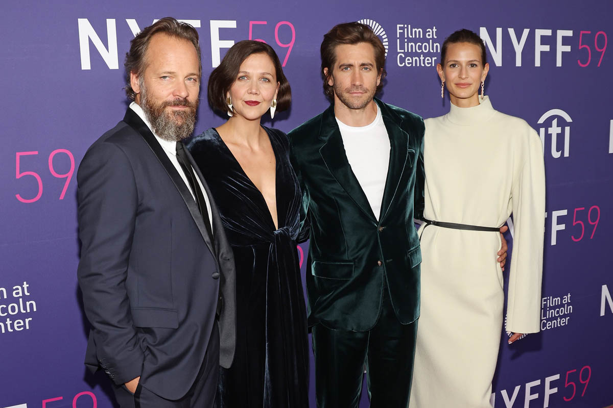 Peter Sarsgaard, Maggie Gyllenhaal, Jake Gyllenhaal, and Jeanne Cadieu attend the premiere of "The Lost Daughter" during the 2021 New York Film Festival at Alice Tully Hall, Lincoln Center on September 29, 2021 in New York City