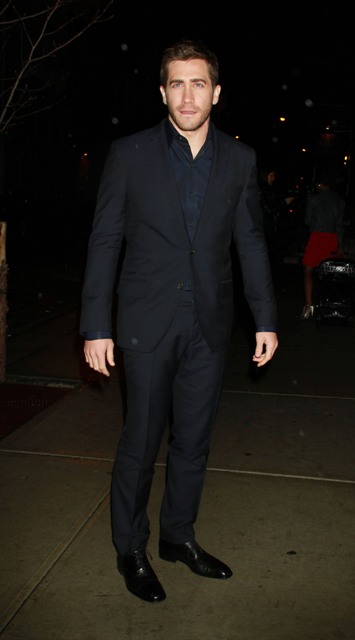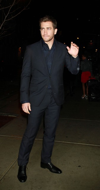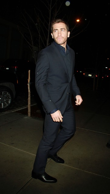 Jake Gyllenhaal’s new movie Source Code opens today. There was a screening in New York last night. Here’s Jakey, after a week of talk show appearances, arriving at the theatre last night and inside with costar Michelle Monaghan (remember when everyone said she’d be a big deal?).