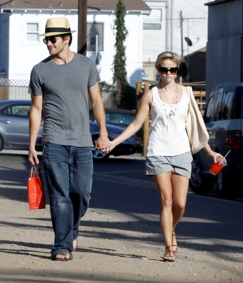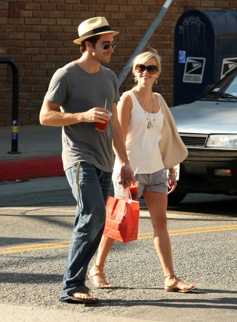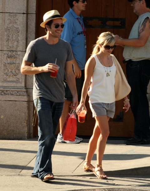 I dreamt of Jake Gyllenhaal last night. Nothing dirty. In fact, I can’t remember exactly what we were doing. But he was very handsome and only appeared from the waist up. Then I woke up this morning to these photos of Jakey and Reese Witherspoon hand in hand in Venice yesterday and, well, no wonder my dream director only shot him from the waist up. Those f-cking jeans are the ass.