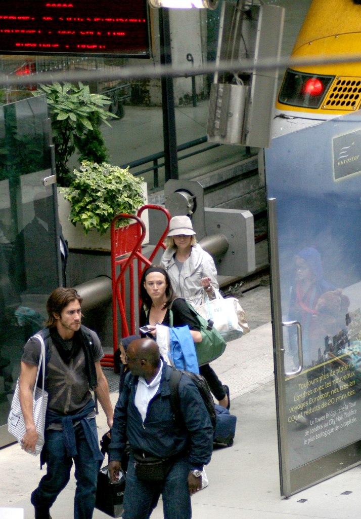 Here’s Jake with Reese, her children, and a nanny heading to Paris for the weekend by train, perhaps taking a few days off as Jake has been hard at work on the Prince of Persia. Ava is the cutest in her glasses, non?
