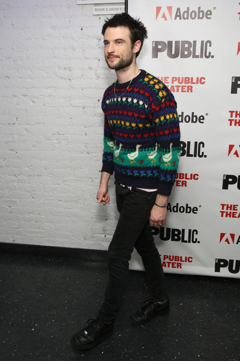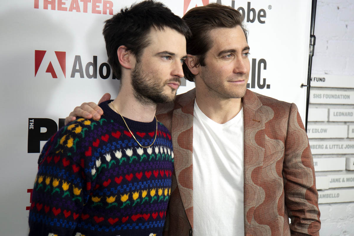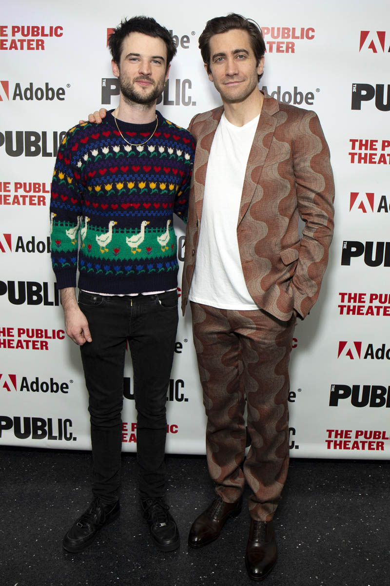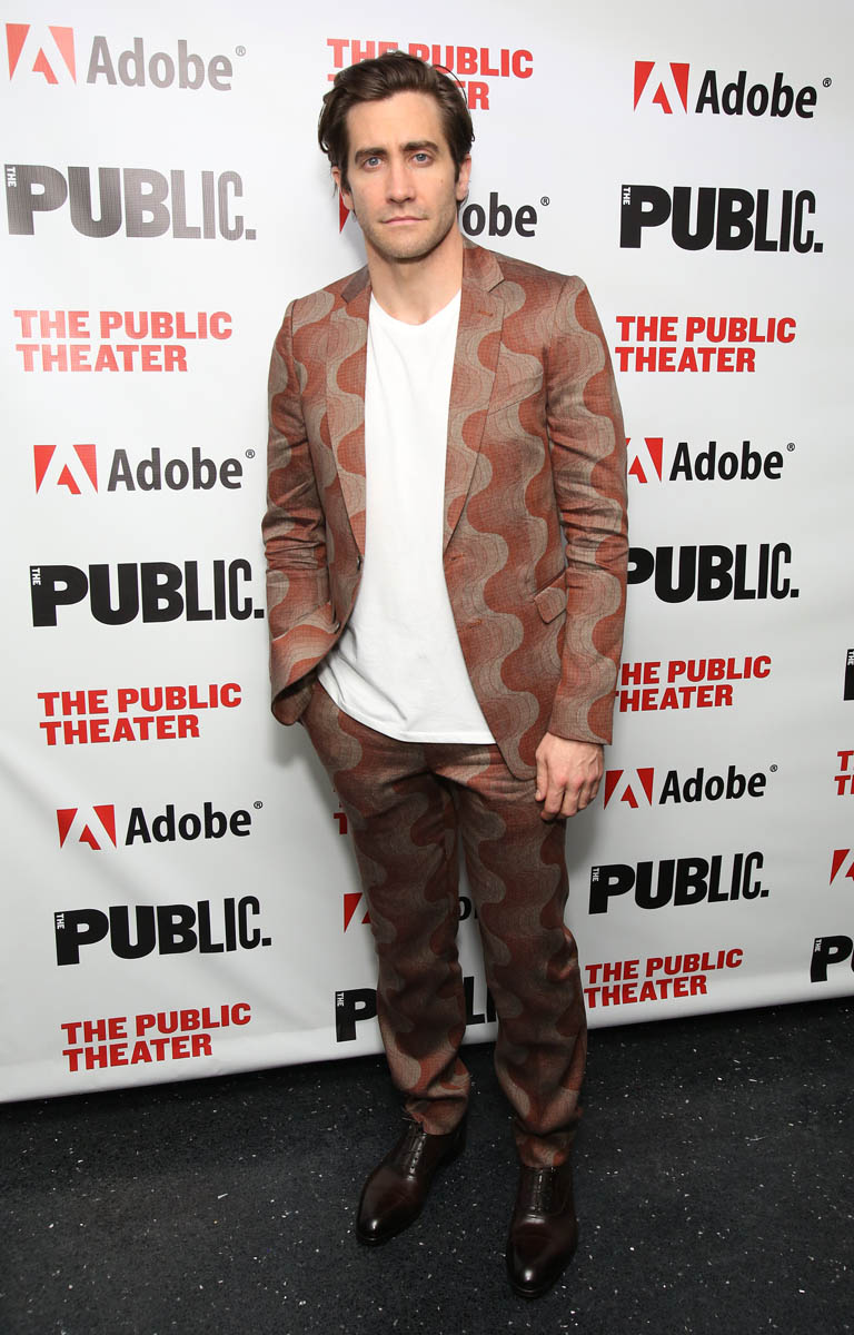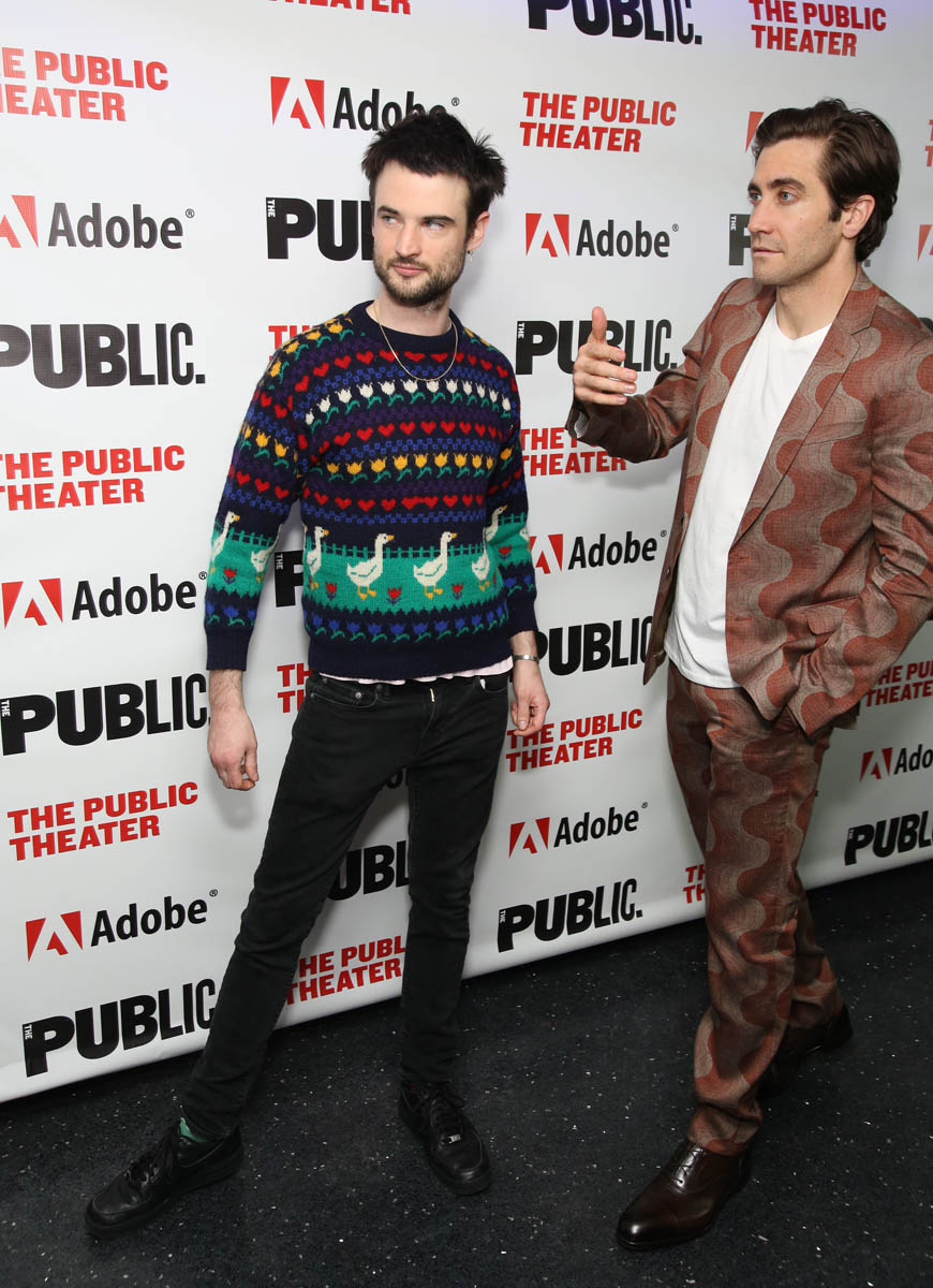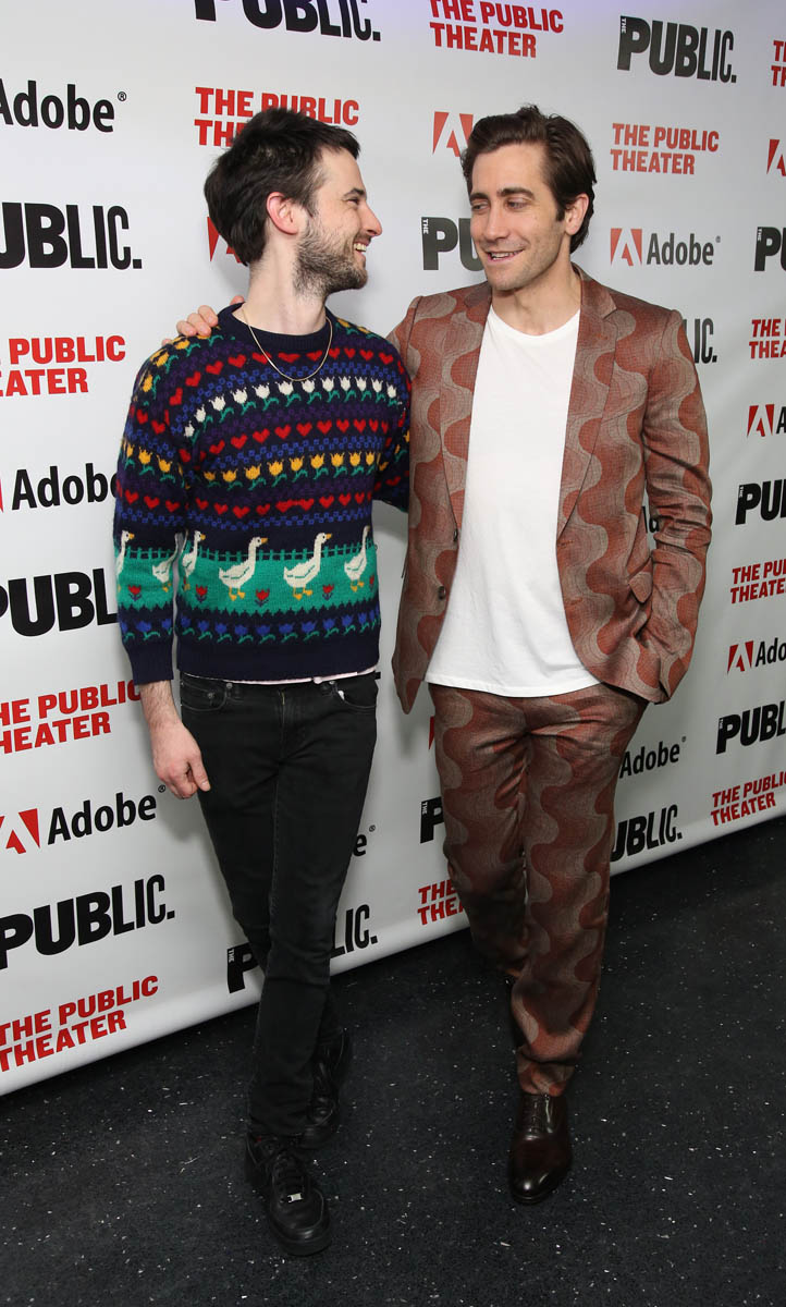 Here are Jake Gyllenhaal and Tom Sturridge last night in New York at The Public Theatre for their play(s) Sea Wall/A Life. The reviews I’ve read so far have been solid and both actors are being praised for their performances, with critics noting that Jake, who’s been focusing his attention on the stage as much as the screen the last several years, is “slowly building a theatrical resumé to match his work on film”. No but seriously, even though he was a dick to me at TIFF, on a work night for both of us, it’s undeniable the versatility he continues to show – he is at the top of his class, among his contemporaries there’s almost no one with this kind of range. Jake can sing, he can monologue, he’s Broadway and Hollywood, he’s indie and box office, he’s romantic lead and weirdo, he’s funny and he can be so, so, so dark. Leonardo DiCaprio, meanwhile, does one thing. But let’s not be petty.