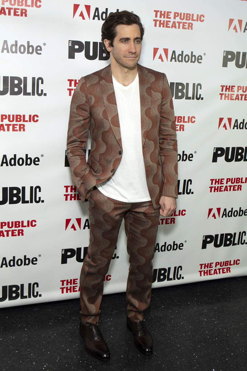 Also, the suit next to Tom’s hilarious Valentine’s Day sweater, which I also love, is the ultimate clash. And it’s a lot more fun being able to care about what men are wearing the way we care about what women are wearing. These are prints that we often see on women’s clothing: animals, hearts, flowers, swirly lines and angles. It’s represents the continual blurring between what’s been conventionally considered “men’s” and “women’s” fashion. It’s no longer “girls wear this” and “boys can’t wear that”. It could be read as encouragement for us to imagine a different set of gender norms. If this is how Jake is dressing for off-Broadway, I wonder what we’ll see from him when he starts the press tour as Mysterio for Spider-Man: Far from Home. Here’s what he posted for Valentine’s Day, by the way. These two are going to be GREAT in interviews together.