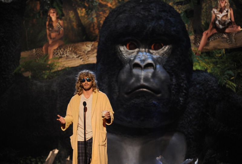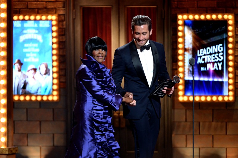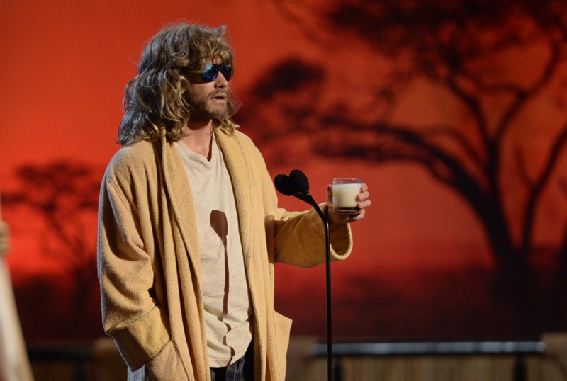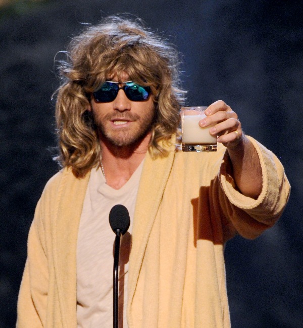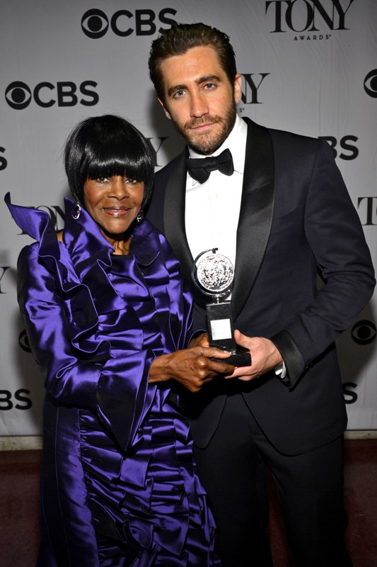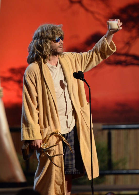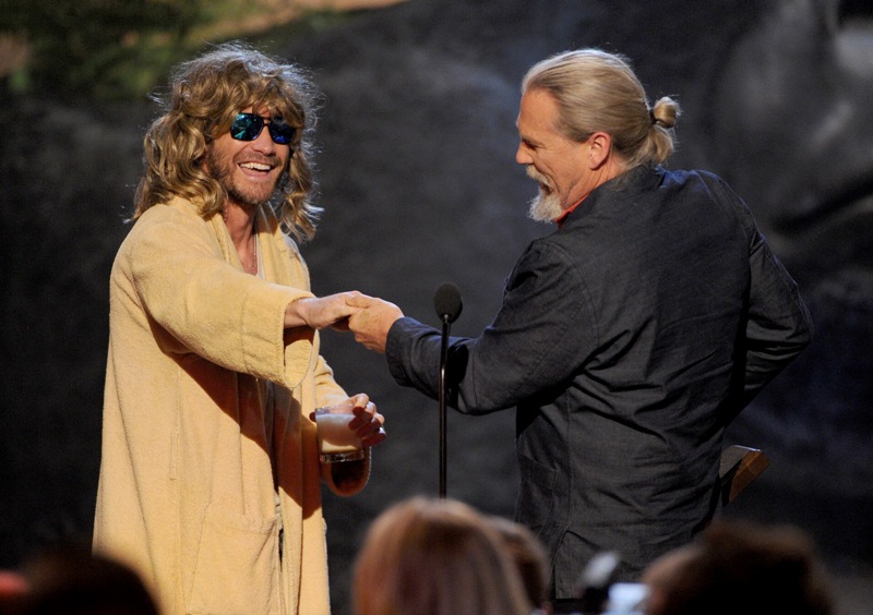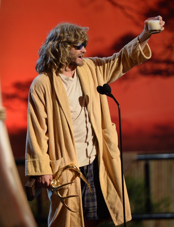 Jake Gyllenhaal hit up two award shows this weekend. On Saturday night he was in LA for Guys Choice, presenting to Jeff Bridges dressed up as The Dude. I preferred him this way. On Sunday he was at the Tonys looking very handsome in a tuxedo though I could do without the pinky ring.