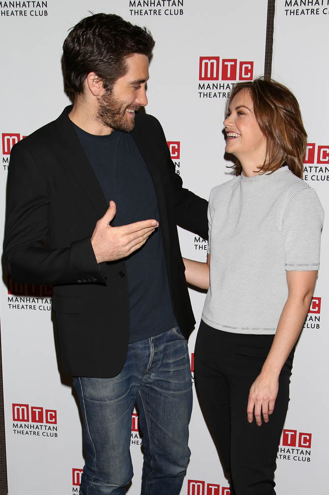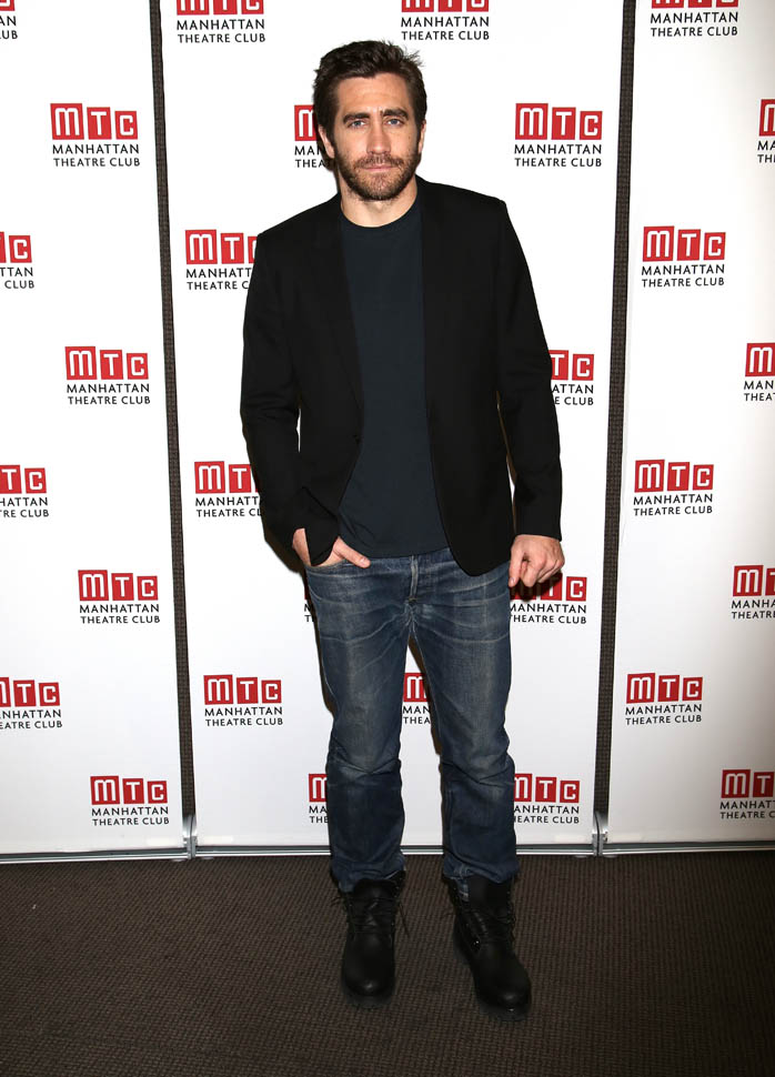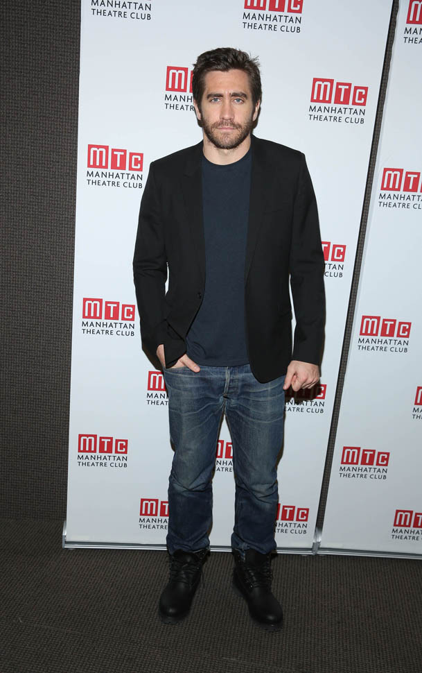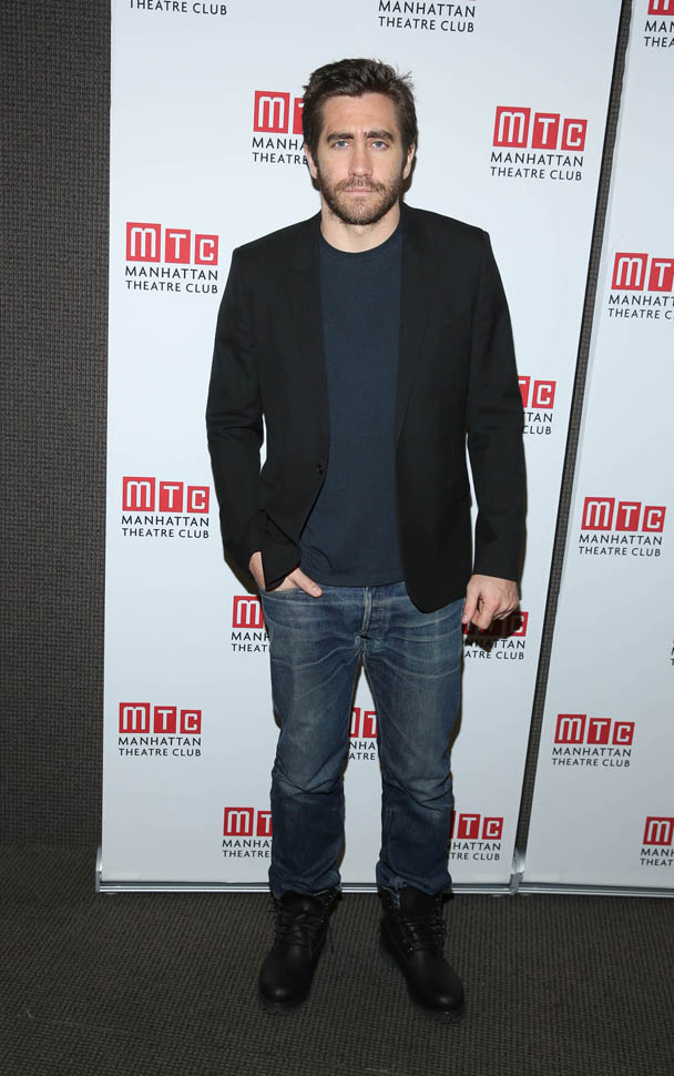 Anyway, here’s Jake Gyllenhaal in New York today at a press preview for Constellations. The play begins on December 16 and official opening night is January 13. Here’s the synopsis: