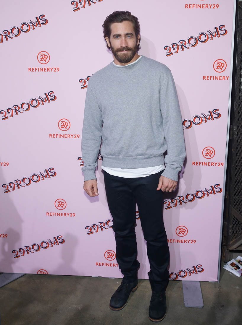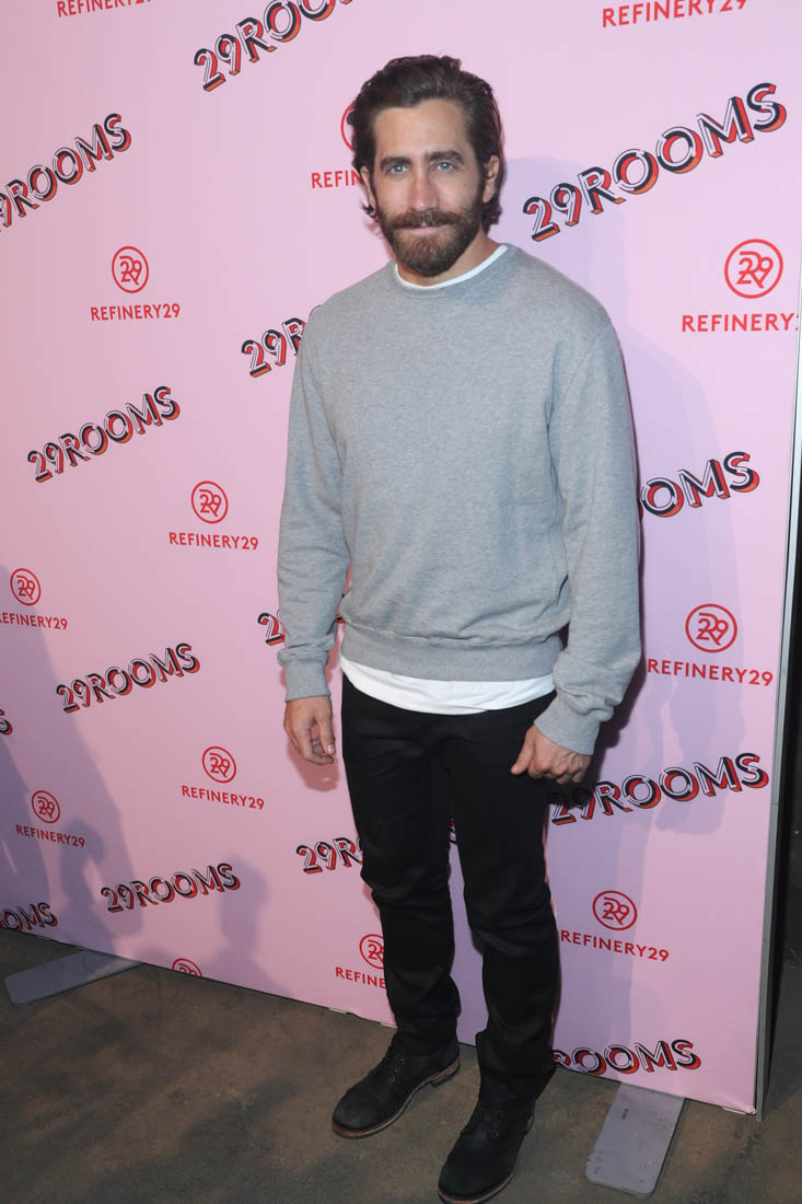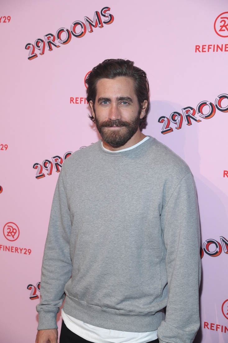 Jake seemed to be in great spirits, too - schmoozing with the crowd, chatting up Lupita, and posing with her and Trevor Noah together. He also posed in Refinery 29's 29 Rooms art installation booth, and his expression says it all: