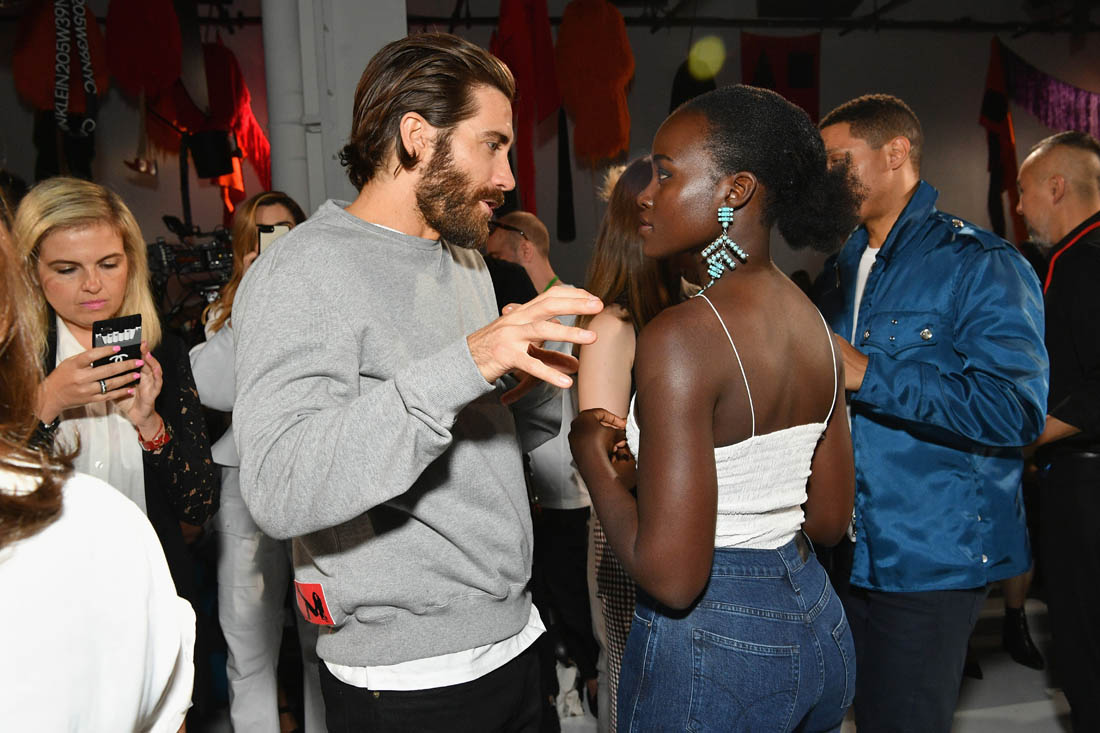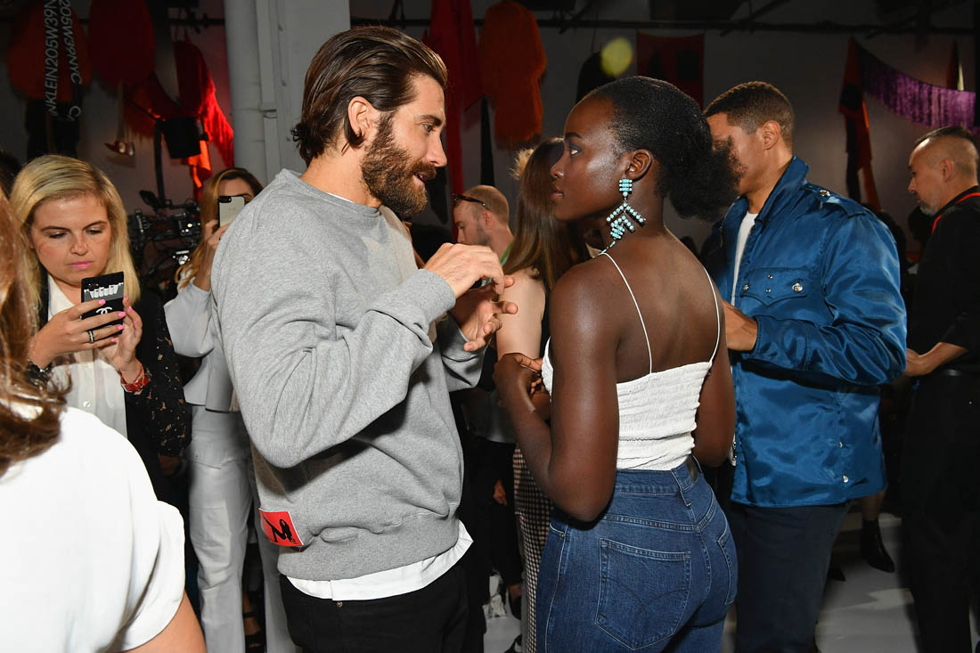 Gaga or (Jake) Gyllenhaal: who would you pick? They both have world premieres at TIFF tonight, half an hour apart, across the street from each other. But on his night before TIFF, Jake sat front row with Lupita Nyong'o and Rashida Jones at the Raf Simons Calvin Klein Collection show at New York Fashion Week.
