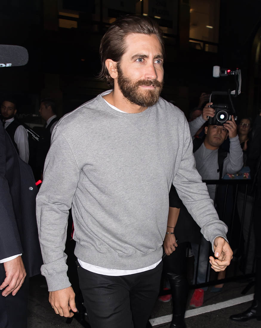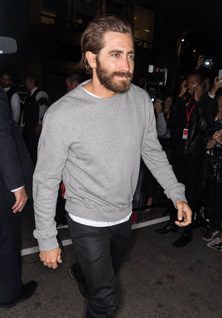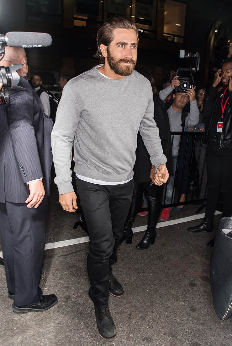 Plus, this caption: "Jake Gyllenhaal is here and we literally cannot." Same. But, there's also a hashtag here for #StrongerMovie and #StrengthDefinesUs, the name and the slogan of his latest film, which will screen for the first time at Roy Thomson Hall in Toronto at 6:30 p.m. ET. Perhaps, then, these two events are linked. Of course Jake is on the Toronto guest list and confirmed to attend. There's also a press conference scheduled for 11 a.m. tomorrow (Saturday), with junkets and interviews after that. I always refer to later-morning press conferences as a party buffer, or schmooze buffer, and it looks as though Jake may need just that.