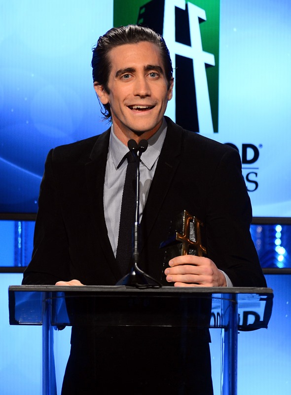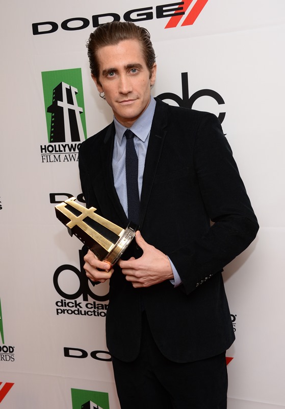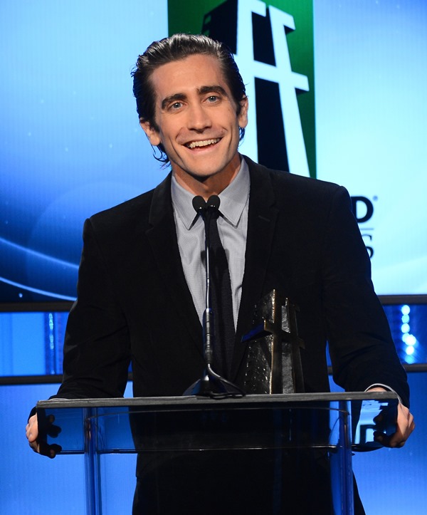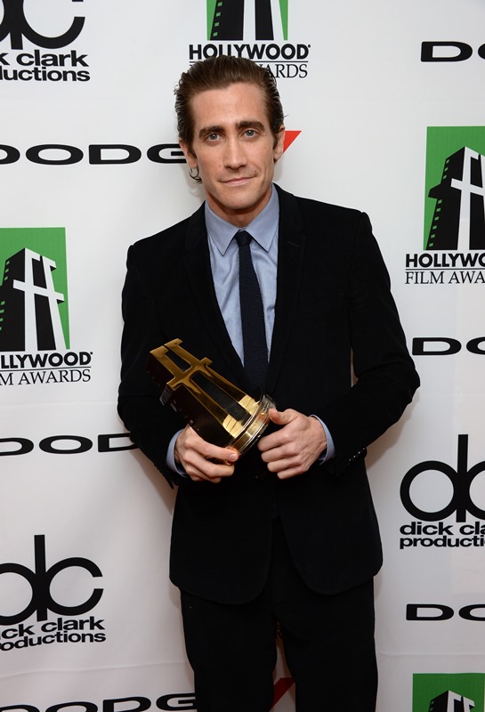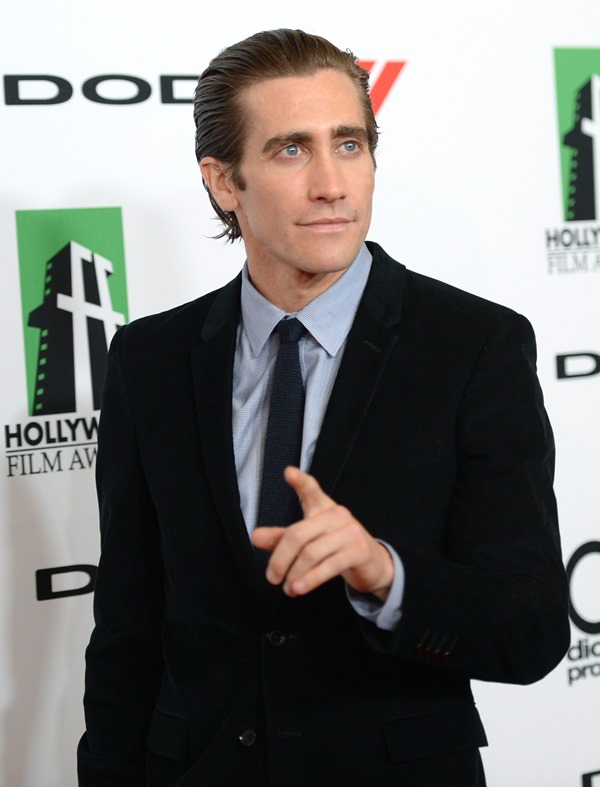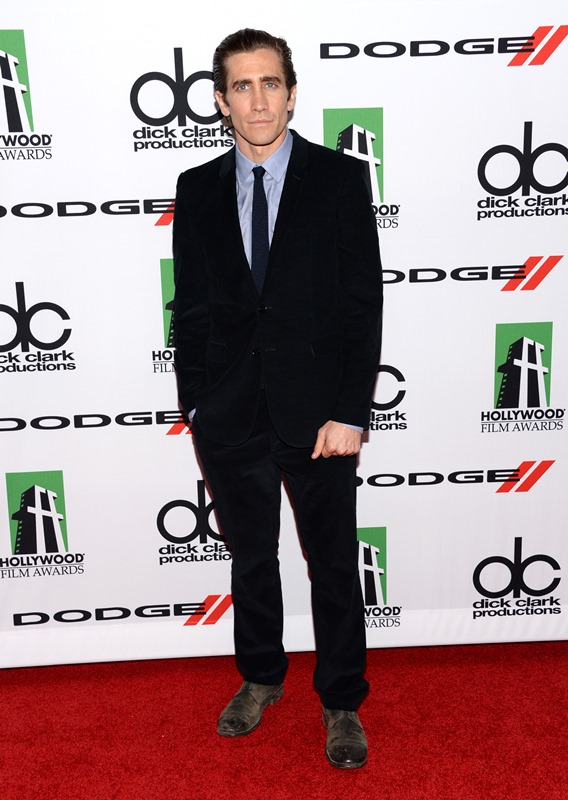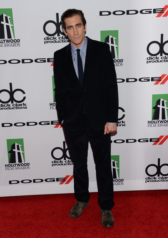 Here’s Jake Gyllenhaal at the Hollywood Film Awards last night. Jake’s currently shooting a movie called Nightcrawler that reportedly required him to drop some weight. Look at what it’s done to his face. 32 year old Jakey G easily passes now for 40+.