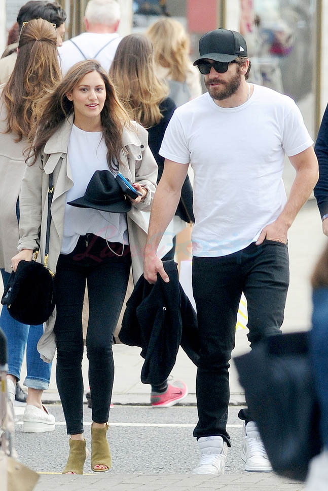 Jake Gyllenhaal was in London this week accompanied by a woman he met recently that British gossips have identified as Anna Liban. They went out for lunch. It looked like a flirty lunch. He had his hand in her hair. And they dressed the same. So I guess we have to stop talking about him and Rachel McAdams. And him and Ruth Wilson.