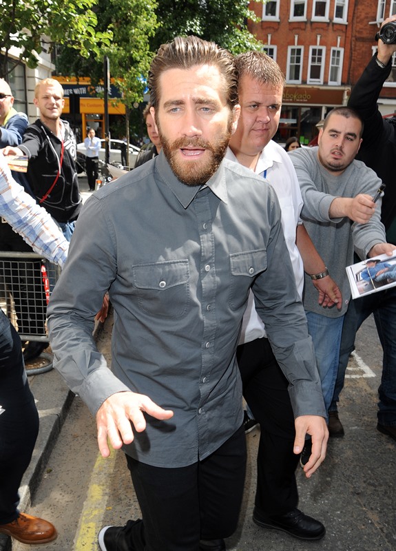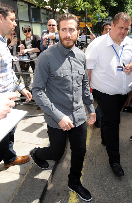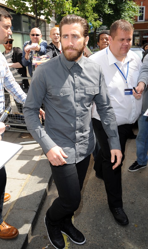 In other Jake news, the first reviews for Southpaw have been posted after it screened at the Shanghai Film Festival. So far the consensus seems to be that he’s great but that the film is pretty ordinary, a cliché boxing movie. Harvey Weinstein promised to secure Jake an Oscar nomination when he was in Cannes last month. On performance it sounds like Jake delivers but the question now is whether or not the mediocrity of the movie will hold him back. Then again, there’s also the x factor of campaigning. Probably doesn’t matter that the movie is pretty average if he dazzles on the award circuit. If he makes the right moves, says the right things, smiles from his adorably droopy eyes, and charms everyone on the talk show circuit. Which he’s certainly capable of. But he’s also capable of a take-myself-too-seriously I’m-no-fun attitude too. We saw that recently when he spoke to Esquire – click here for a refresher. Which Jake will show up?